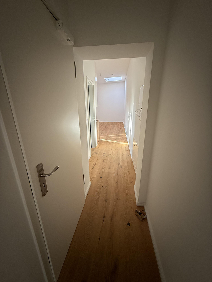 Die Wohnung ist durch die Zusammenlegung von zwei Wohneinheiten entstanden und überzeugt dadurch mit einem besonders großzügigen und durchdachten Grundriss. Herzstück der Wohnung ist der helle Wohnbereich mit offener, integrierter Wohnküche. Großflächige Fenster, eine angenehme Raumhöhe sowie der offene Schnitt schaffen ein modernes, lichtdurchflutetes Wohnambiente. Vom Wohnbereich aus gelangen Sie direkt auf die sonnige Dachterrasse, die zusätzlichen Wohnkomfort im Freien bietet.