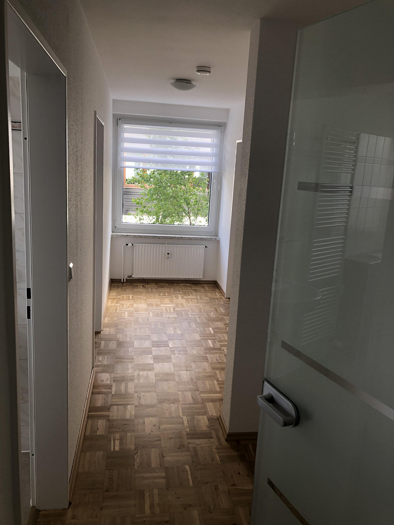 Parkett, alle Zimmer mit Fenster, Einbauküche, Gäste-WC, Keller, Waschmaschinenraum, 1.OG, Haus am Hang - 12 Stufen bis zur Wohnung, Anmietung einer Garage möglich