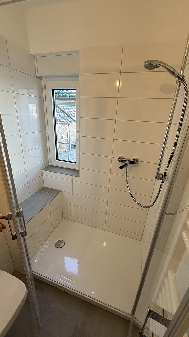 – Modernisiertes Badezimmer mit ebenerdiger Dusche, Hänge-WC und Handtuchheizkörper