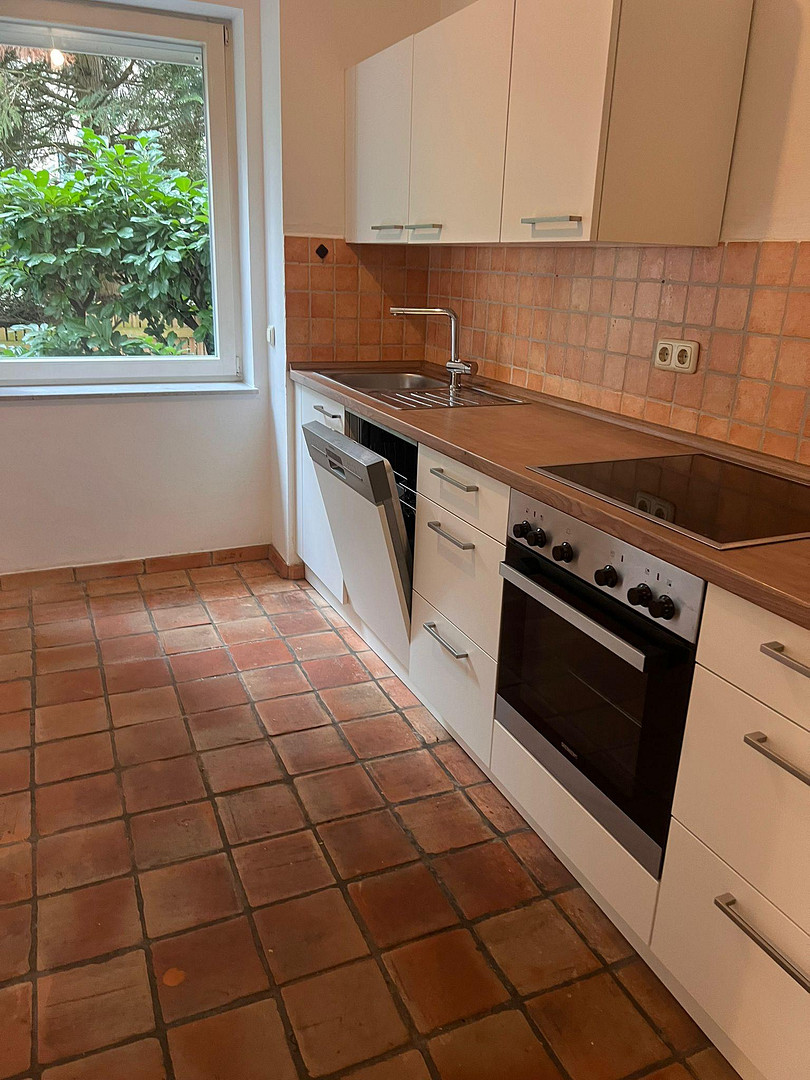 Die separate Küche überzeugt durch hochwertige Einbauten und stilvolle Terracottafliesen, die dem Raum eine zeitlose, leicht mediterrane Note verleihen. Sie ist funktional durchdacht und zugleich ein Ort, an dem Kochen und Genießen selbstverständlich zusammengehören.