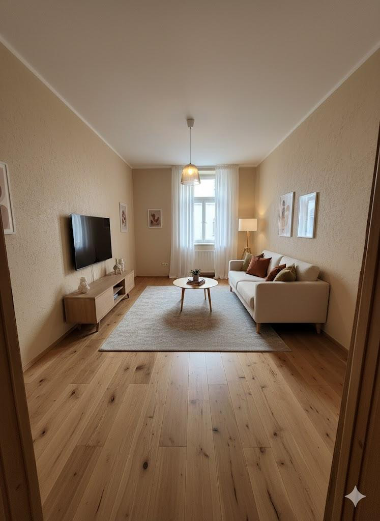 Was aus diesen Wänden werden kann, zeigen wir Ihnen schon heute. Die beigefügten KI-generierten Bilder dienen der Veranschaulichung und präsentieren einen modernen, „warmen“ Einrichtungsstil, der das volle Potenzial der Grundrisse ausschöpft. Lassen Sie sich von diesen Design-Beispielen für Ihr eigenes Projekt inspirieren.