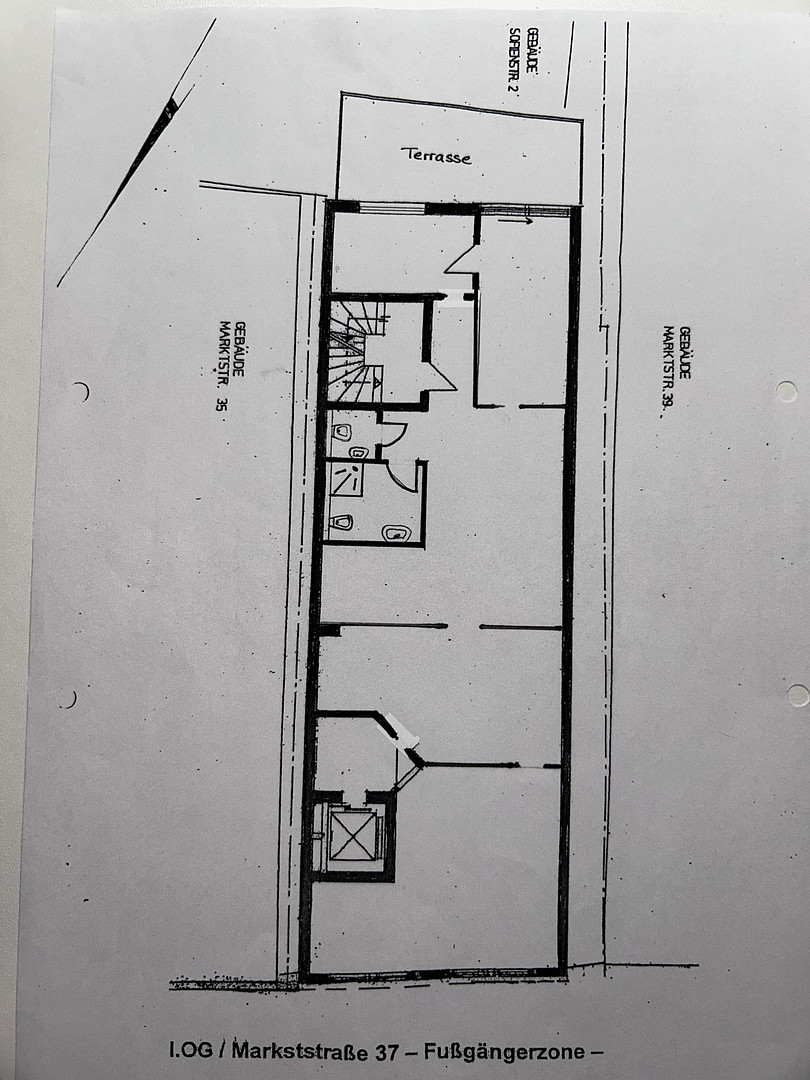 Marktstraße 37, 73230 Kirchheim-Teck (Kirchheim unter Teck) – Baden-WürttembergIn absolut zentraler Innenstadtlage von Kirchheim unter Teck (Fußgängerzone) steht eine gepflegte Büroeinheit im 1. Obergeschoss zum provisionsfreien Privatverkauf. Die Einheit umfasst 103,36 m² Nutzfläche netto und überzeugt durch eine klar strukturierte Aufteilung mit Empfangsbereich, großzügigen Büro-/Arbeitsflächen, separatem WC sowie einem Bad mit Dusche.