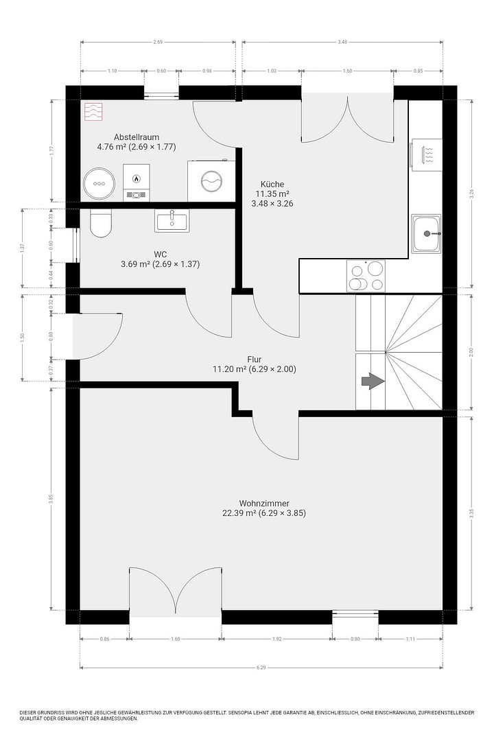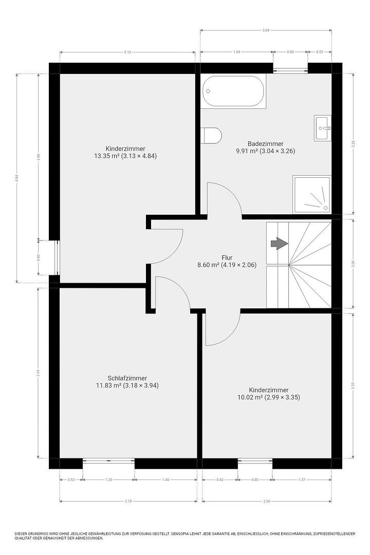 Ein Gästebad im Erdgeschoss sowie ein Vollbad mit Badewanne und separater Dusche im Obergeschoss bieten hohen Komfort – ideal für Familien oder Paare mit Platzbedarf. Ergänzt wird das Raumangebot durch einen praktischen Abstellraum.