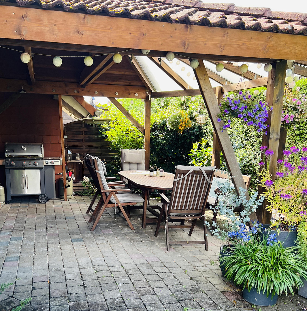 Überdachte Terrasse für entspannte Sommerabende.
