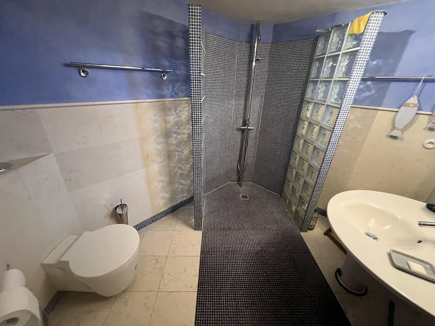 • Schreiner-Einbauküche mit hochwertigen Einbaugeräten (amerikanischer Kühlschrank mit Wasserversorgung, Miele-Dampfgarer, Miele-Kaffeevollautomat mit Wasserversorgung, Imperial-Backofen, BSH-Spülmaschine, elektrische Brotschneidemaschine in Schublade, Ceran Induktion Kochfeld, Teppanyaki, Dunstabzug aus Großküchentechnik)