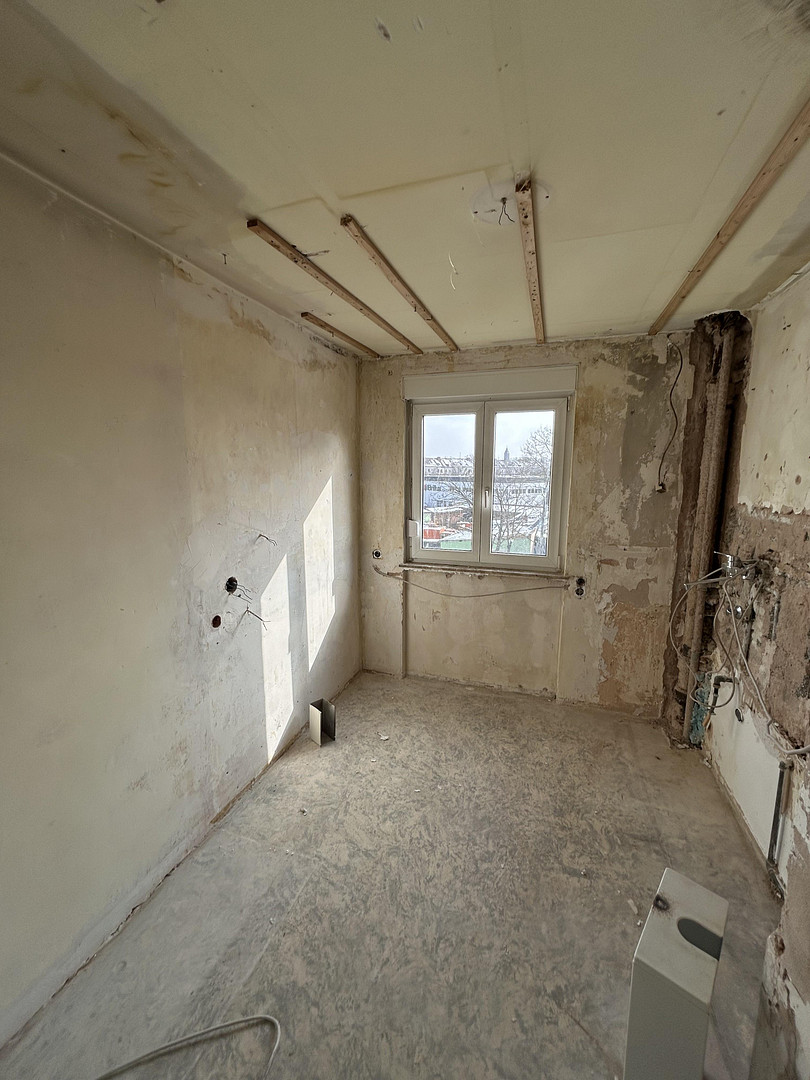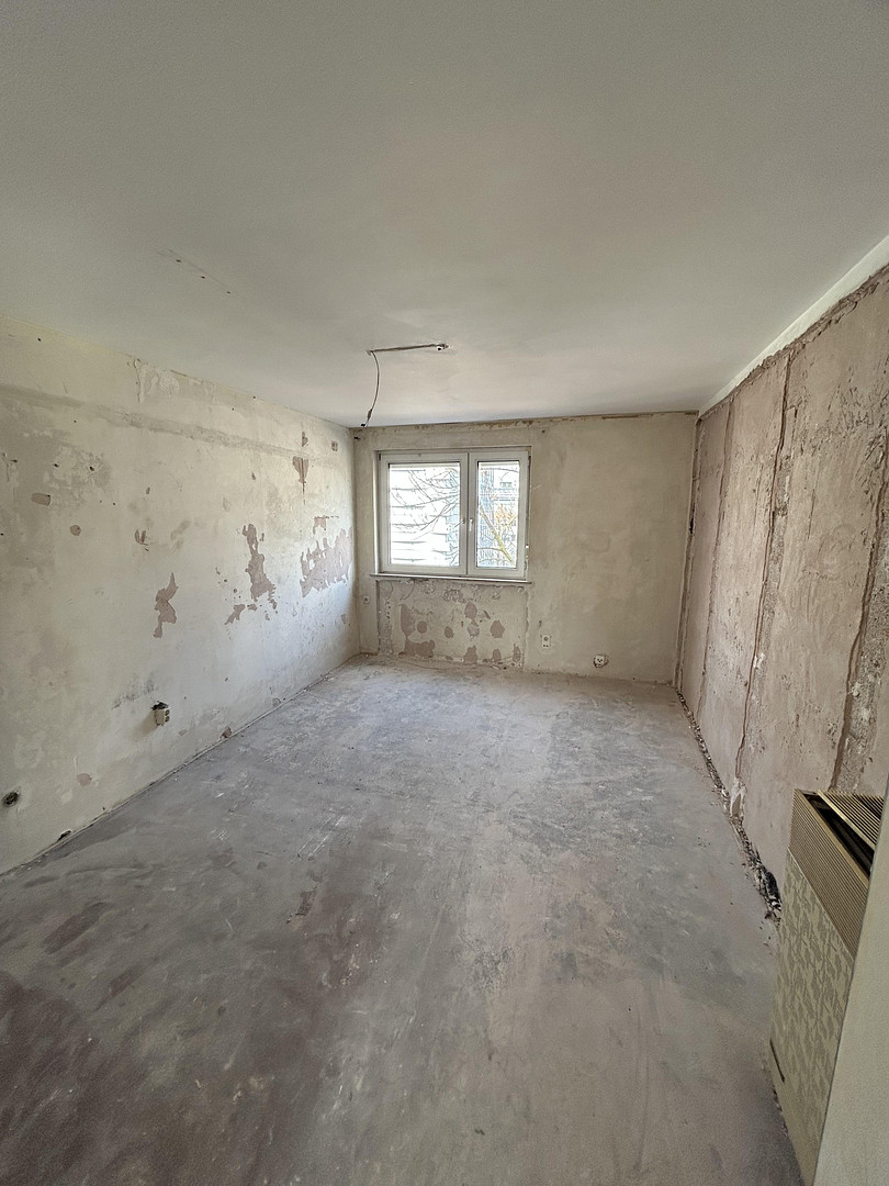 Durch die bereits erfolgte Entkernung kann die Wohnung komplett individuell saniert und ausgebaut werden. Sie bietet somit ein ideales Fundament für eine funktionale und moderne WG-Struktur, bei der jeder Bewohner/in ein eigenes, gut proportioniertes Zimmer erhält.