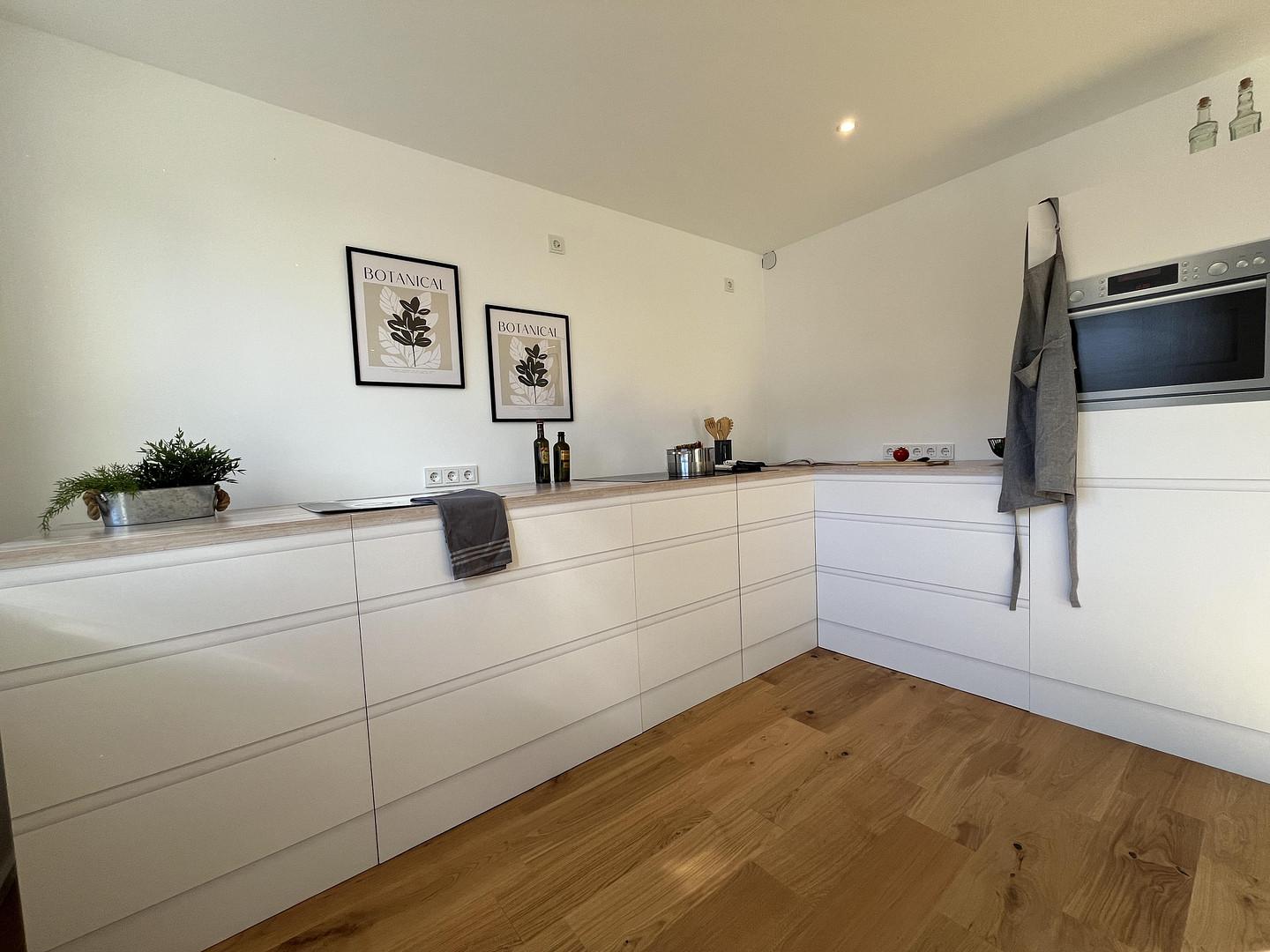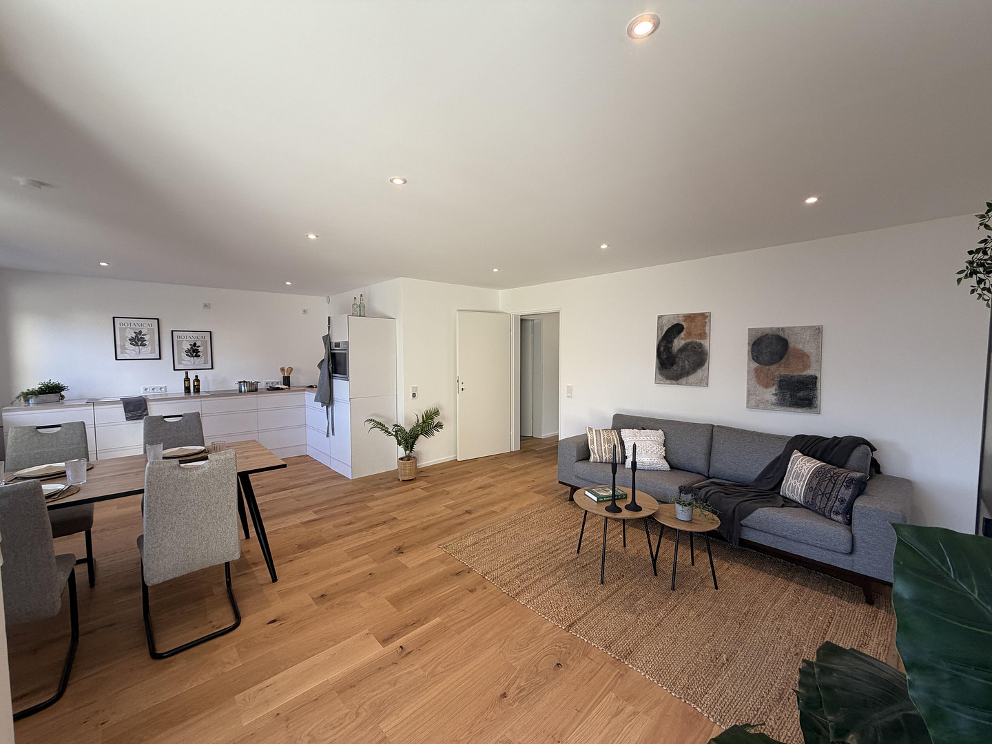 Das großzügig geschnittene Wohnzimmer lädt zum Verweilen ein und bietet genügend Platz für gemütliche Abende mit Freunden und Familie. Die große Terrasse vor dem Wohnzimmer lädt ein, das Frühstück im Freien zu genießen oder abends bei einem Gläschen Wein den Tag ausklingen zu lassen.