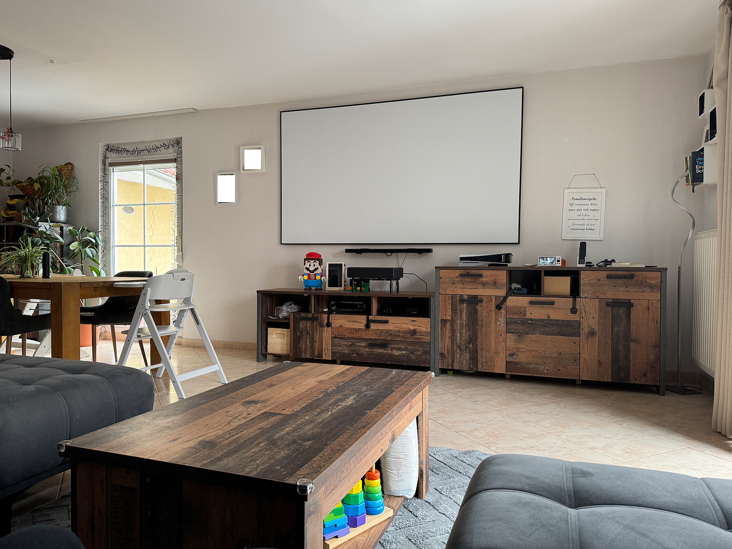 Flur mit Zugang zum Gäste-WC und zur Küche. Von der Küche (oder über eine separate Tür) gelangen Sie in das große, helle Wohnzimmer mit Zugang zur Terrasse und in den Garten. Der Garten ist komplett eingezäunt und bietet viel Privatsphäre. Vom Wohnzimmer gibt es zusätzlich einen direkten Zugang in den Keller.