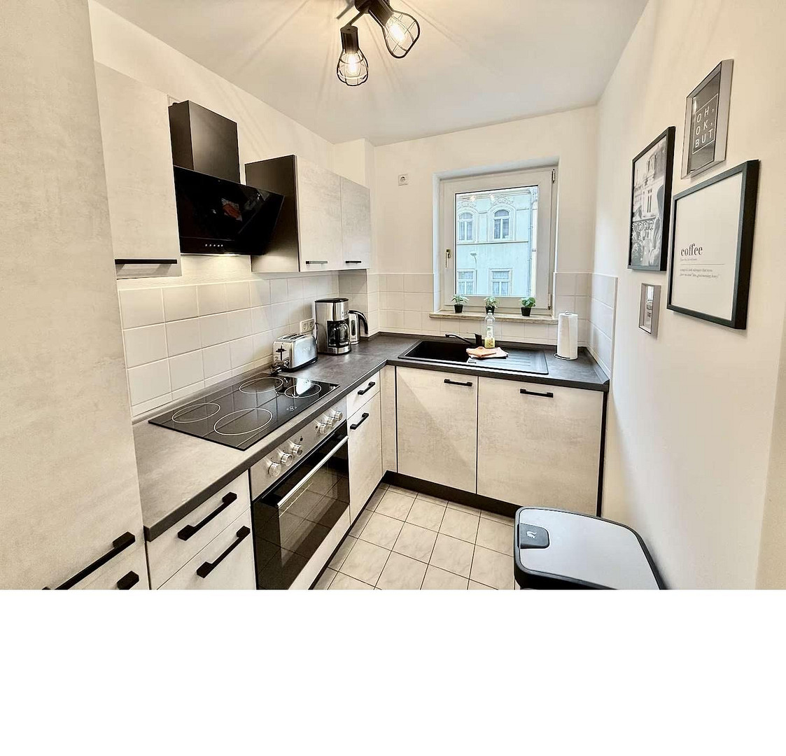 • Küche: Komplett ausgestattete Einbauküche inklusive Geschirr und allen Utensilien.