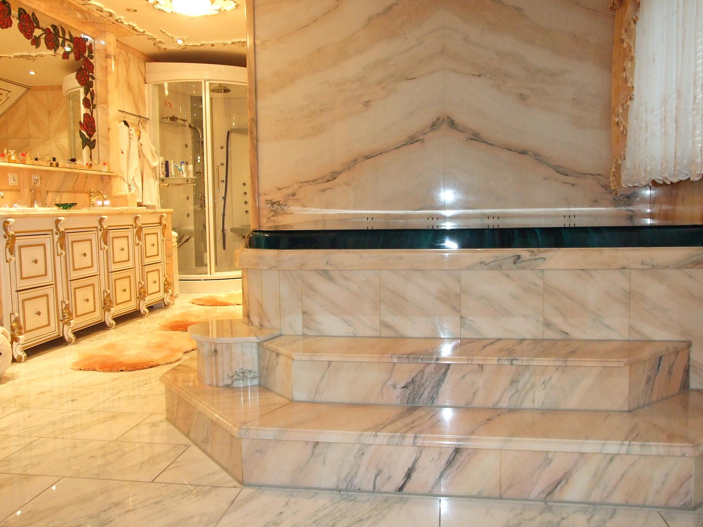 - alle Böden und Bäder in der Wohnung sind in diesen edlen Marmor ausgelegt,