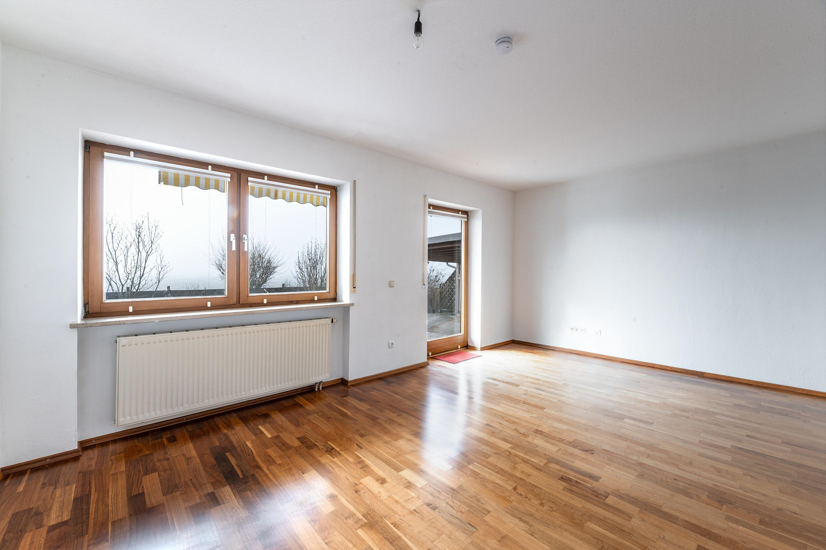 Im Obergeschoss befinden sich zwei helle, gut geschnittene Zimmer. Das große Zimmer mit Zugang zum Balkon kann nach Belieben wieder in zwei separate Zimmer aufgeteilt werden. Das zweite Zimmer lässt sich ebenso flexibel als Schlaf-, Kinder-, Gäste- oder Arbeitszimmer nutzen. Das Tageslichtbad ist mit einer Dusche sowie einer Badewanne ausgestattet.