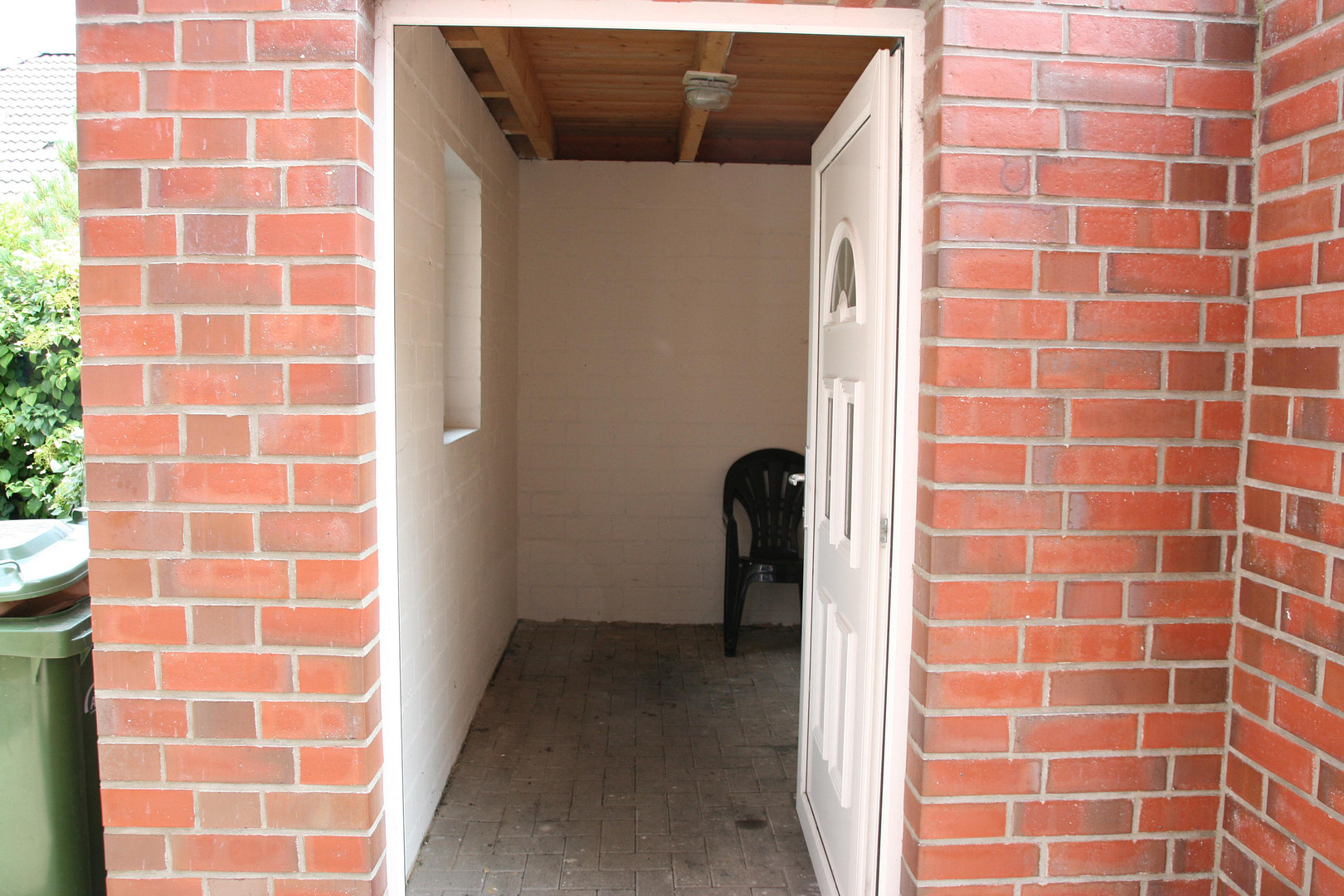 Im Außenbereich ist die Zufahrt zur Garage, der Weg ums Haus sowie die Terrasse mit roten Pflasterklinkern belegt. Die großzügige Terrasse und der Garten lädt zum Entspannen und Verweilen ein.