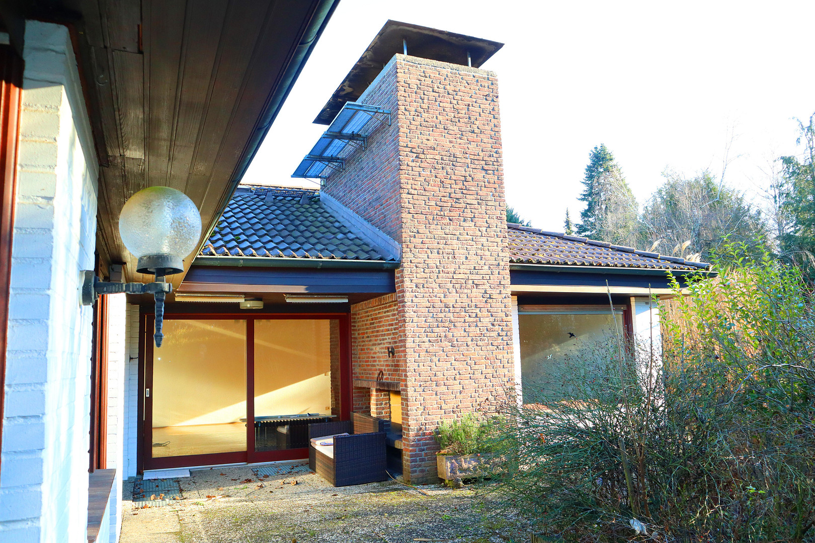 Das Haus selbst überzeugt durch eine großzügige und zugleich charmante Architektur. Wohnen auf einer Ebene mit direkten Terrassen- und Gartenzugängen schafft ein offenes, lichtdurchflutetes Wohngefühl. Große, überwiegend bodentiefe Fenster- und Terrassentüren verbinden Innen- und Außenbereich harmonisch miteinander und lassen viel Tageslicht in die Räume.