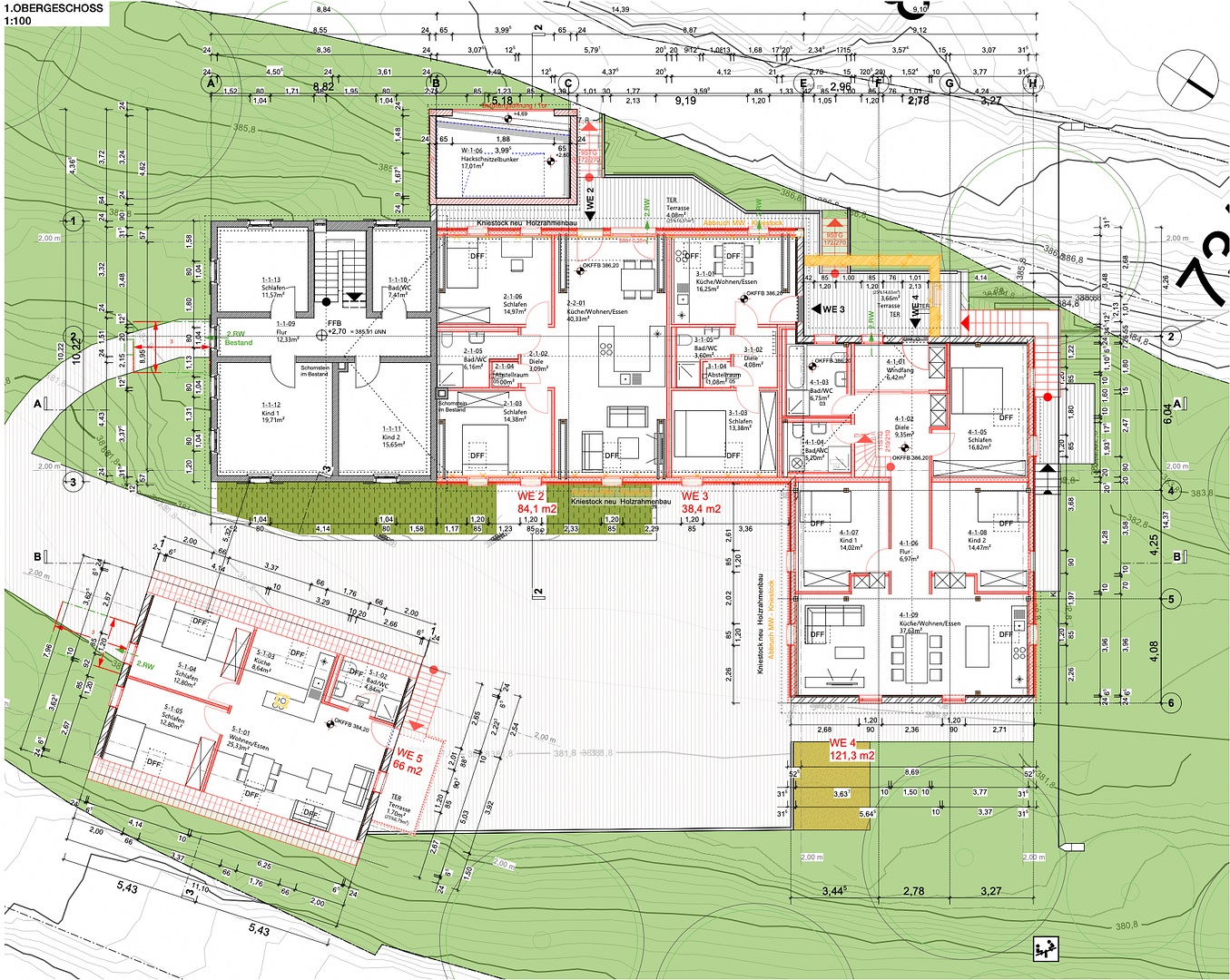 Das Besondere der Immobilie: Neben dem Bauernhaus (WE 1) mit seinen 130 qm Wohnfläche, können in den Heuboden folgende Wohneinheiten gebaut werden: