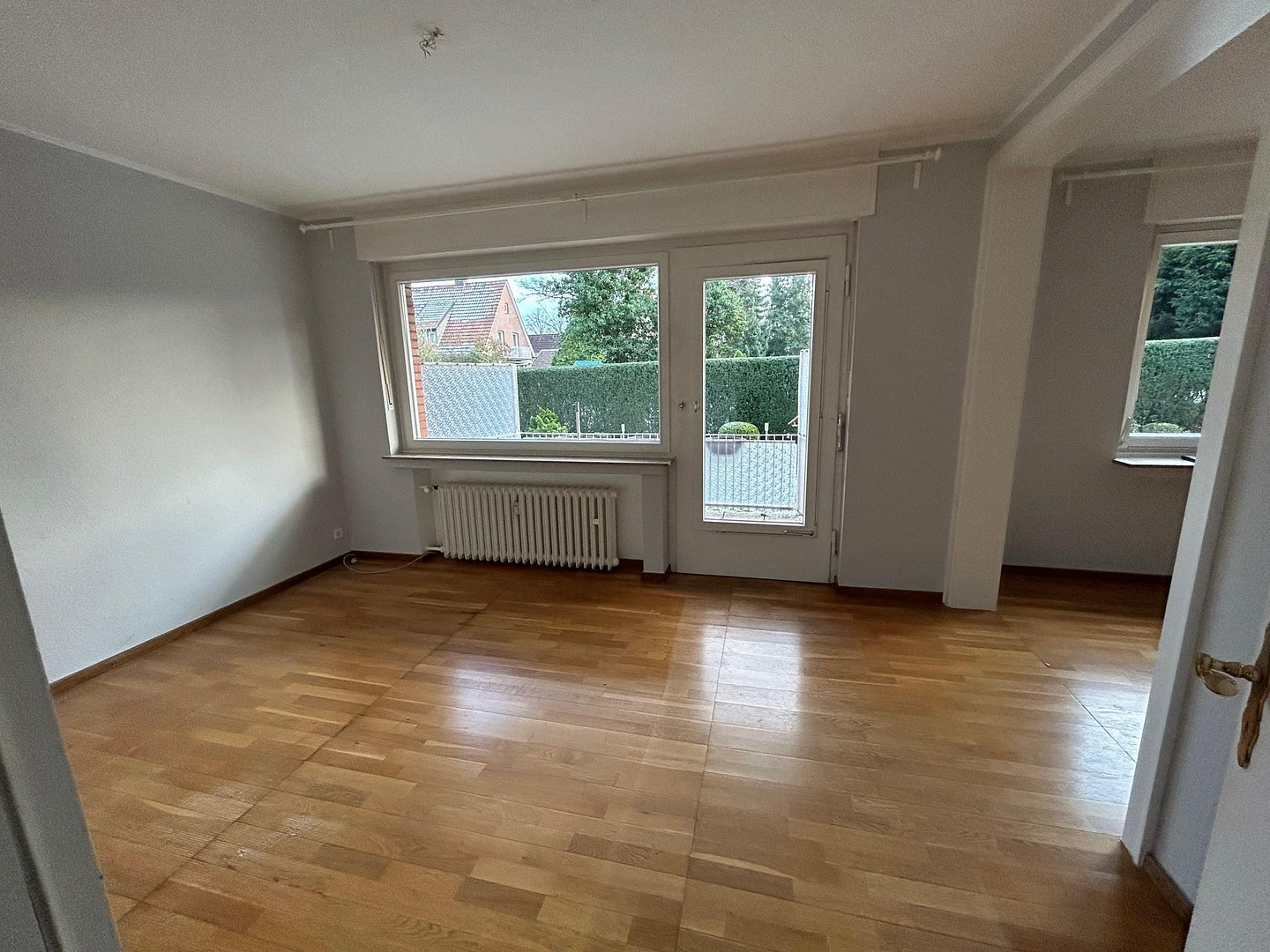 Der große helle Wohnraum überzeugt durch seine Größe, durch die schönen großen Fenster, die den Wohnraum hell und gemütlich wirken lassen und durch den Bogendurchgang zum Essbereich, von wo auch der Garten erreicht werden kann, der zum Entspannen an Sommerabenden einlädt.
