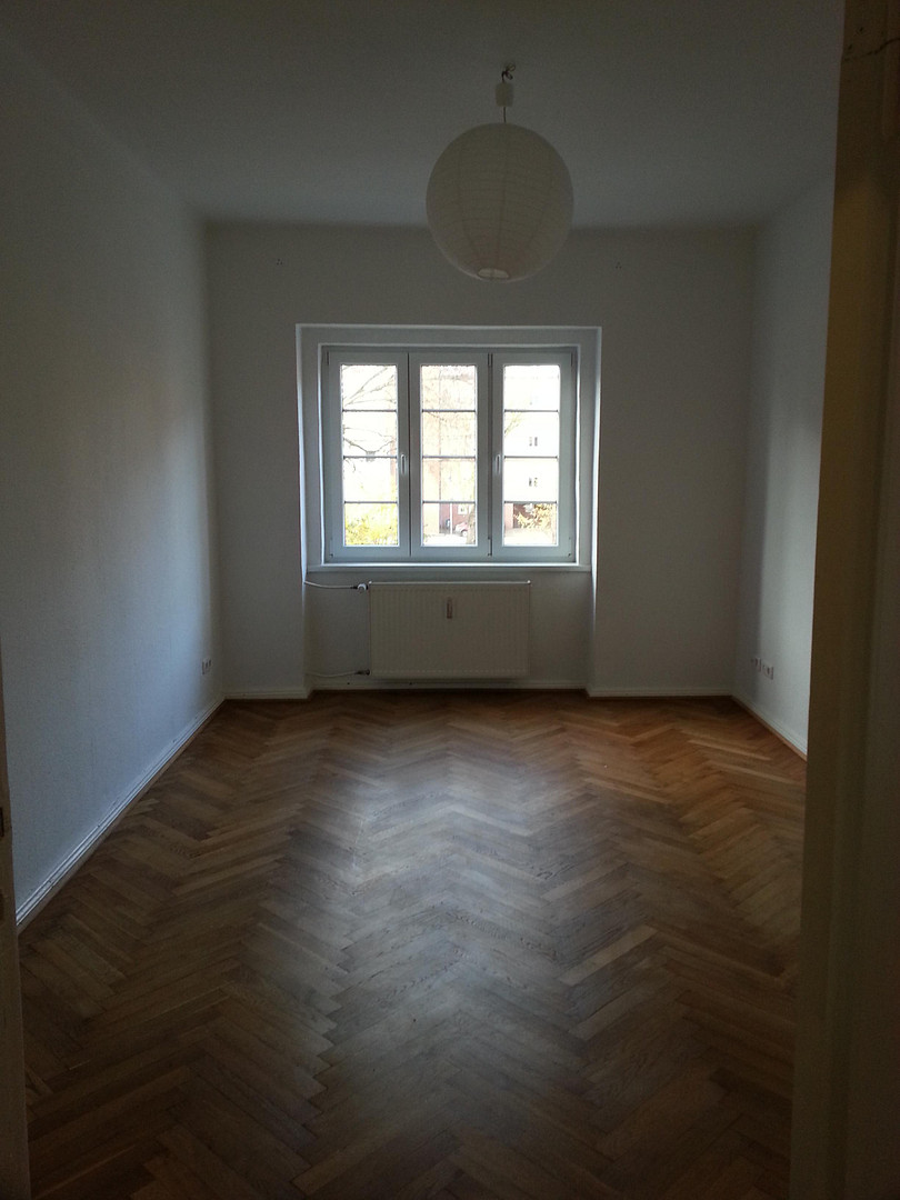 Die Wohnung befindet sich im Erdgeschoss. Sie verfügt über 4 relativ gleich grosse Zimmer, Küche mit Balkon zur Gartenseite. Das grosse, geschmackvoll gestaltete Bad verfügt u.a. über Badewanne und Dusche, 1 Waschtisch, Handtuchheizkörper, Waschmaschinenanschluß und 2 Fenster. Die 4 Wohnräume verfügen über Böden aus massivem Eichenparkett im Fischgrätmuster, Küche, Flur und Bad sind gefliest. Die originalen Innentüren wurden aufgearbeitet. Alle Fenster sind neuzeitliche Kunststofffenster mit Isolierverglasung. Sonstige Ausstattung: Telefon/DSL/SatTV in jedem Raum, Haustürsprechanlage/Türöffner. Zur Wohnung gehört ein privater Kellerraum. Zur allgemeinen Benutzung steht ein Fahrradkeller, ein abgeschlossener Garten hinter dem Haus mit Kleinkinderspielplatz, Ruhezonen, Grillplatz und Wäscheplatz bereit. Kostenlose PKW Stellplätze sind im öffentlichen Bereich vor dem Haus ausreichend vorhanden.