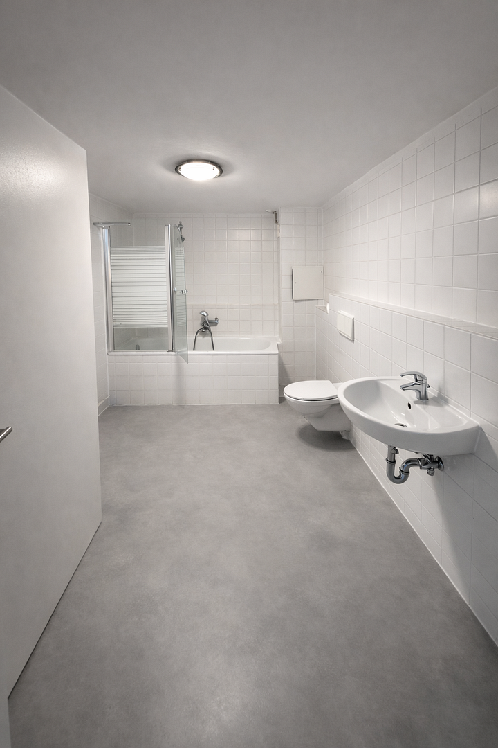 Die Wohnung verfügt über einen hellen Laminatboden, Mikrozement im Bad + geflieste Wände und eine Einbauküche.