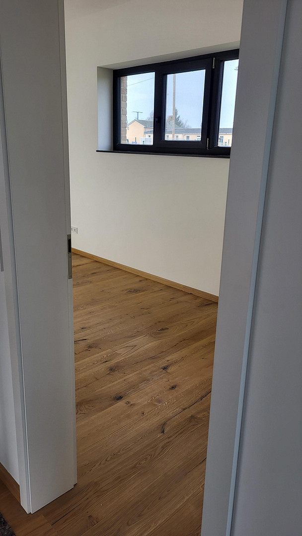 Im EG befinden sich der HWR, Gäste- WC, Büro oder Gästezimmer, großer - offener Küchen – Ess- und Wohnbereich mit Ausgang zur Terrasse. Die Raumhöhe von ca. 2,8m verschafft ein tolles Gefühl für Freiraum. Über die geradlinige Eiche- Naturtreppe gelangen Sie in das DG. Hier befinden sich 2 Kinderzimmer, das große Bad, das Galeriezimmer und das Schlafzimmer mit extra Ankleideraum (mit Veluxfenster). Die Holzfaser- Dämmung bringt ein sehr gutes Wohnklima im Sommer, eine Aufheizung im DG durch Sonneneinstrahlung wird aufgrund der höheren Material- Dichte und der Aufsparrendämmung deutlich reduziert. Die flache Dachneigung bringt mit der Drempelhöhe gute Möglichkeiten für eine Möblierung.