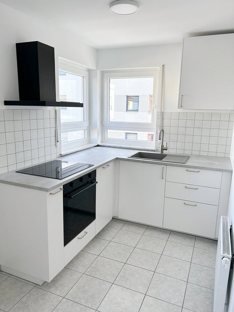 Die Wohnung verfügt über eine neue Einbauküche mit Spülmaschine, Ofen, Induktionsfeld und Dunstabzugshaube.