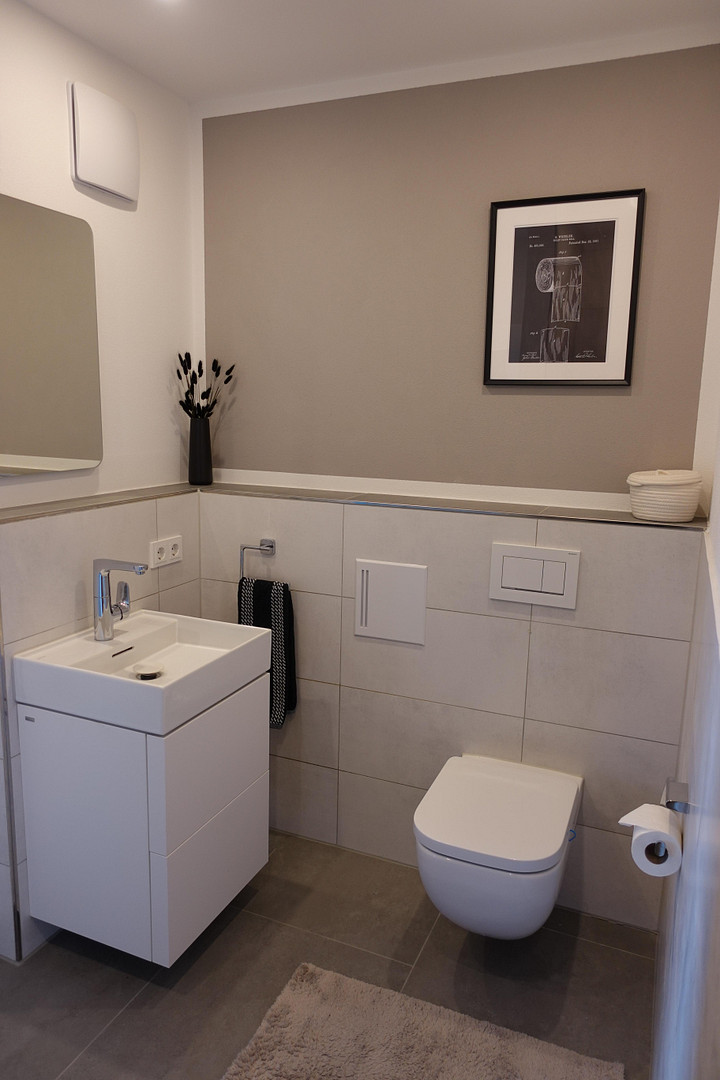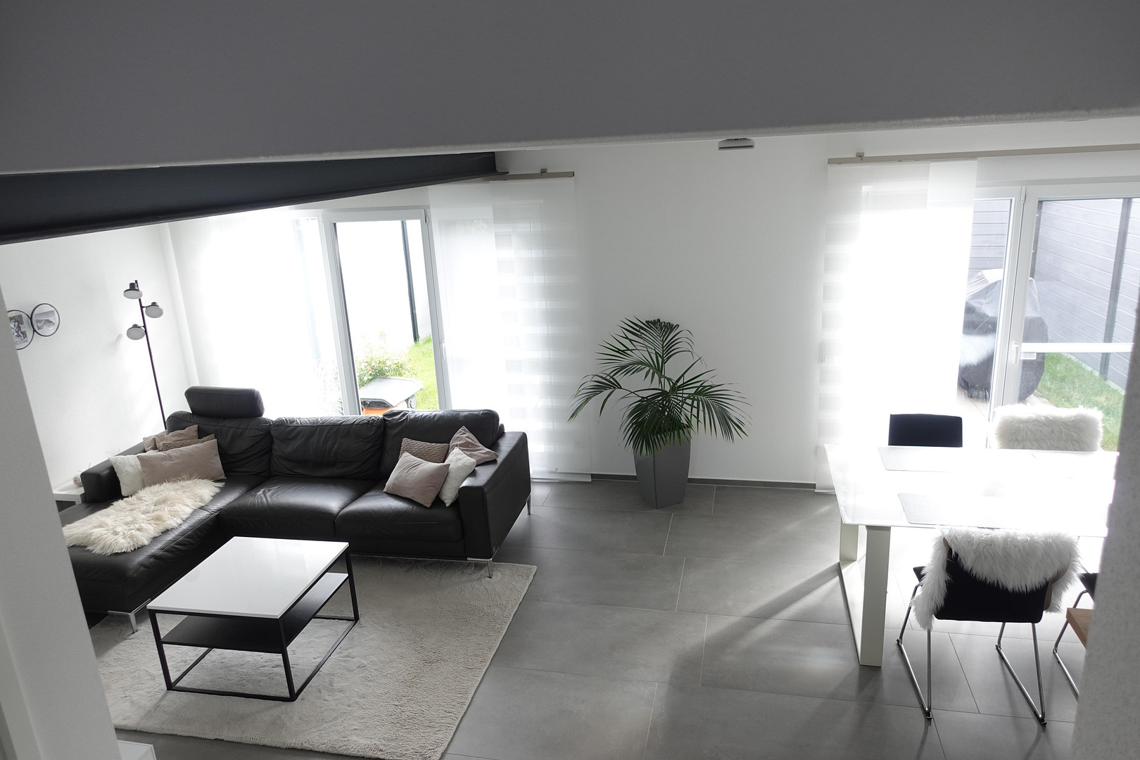 - Großformatige Feinsteinzeugfliesen im gesamten Wohnbereich