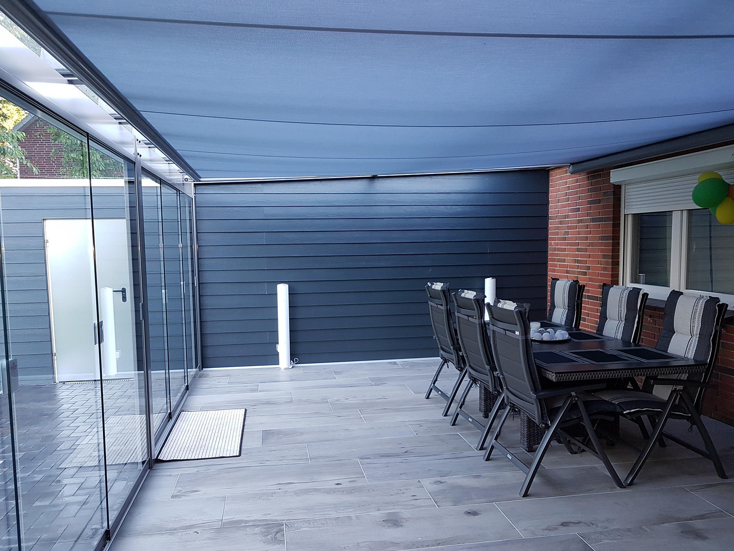 • Outdoor-Living: Die ca. 30 m² große überdachte Terrasse ist mit flexiblen Glasschiebetüren ausgestattet. Genießen Sie hier geschütztes „Draußen-Feeling“ bei jedem Wetter.