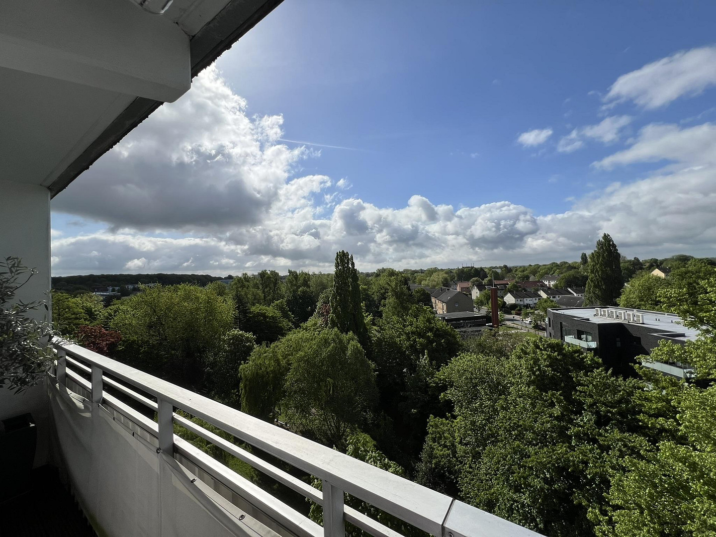 Der charmante Südbalkon, ausgestattet mit einer Markise, erstreckt sich über die gesamte Breite der Wohnung und bietet einen erholsamen Blick ins Grüne. Ausreichend PKW-Stellplätze – teilweise mit Ladestation – sowie eine Garage stehen direkt vor der Wohnanlage zur Verfügung.