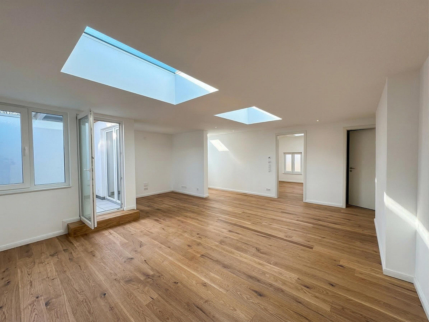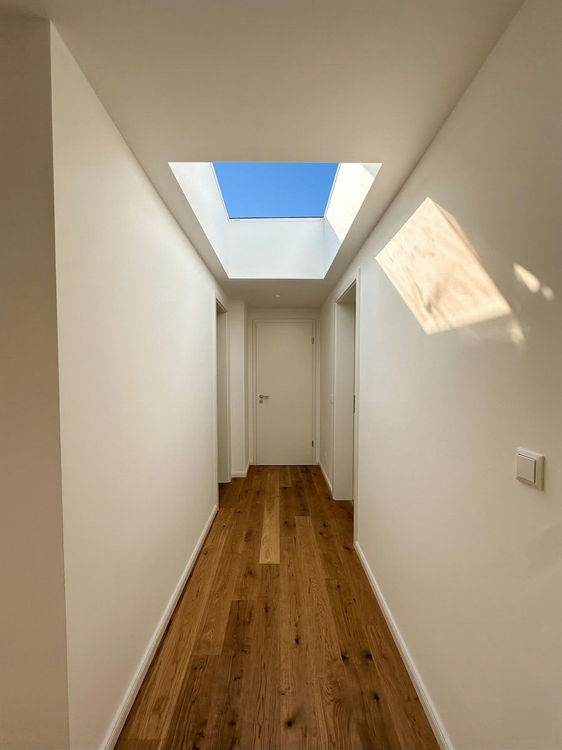 Auf rund 73 m² Wohnfläche entsteht ein stimmiges und modernes Raumkonzept. Herzstück der Wohnung ist der großzügige Wohn- und Essbereich mit halboffener Küche, der durch Dachflächenfenster und ein besonderes Atrium eine außergewöhnlich helle Atmosphäre erhält. Das durchdachte Raumkonzept kombiniert urbane Ästhetik mit hoher Alltagstauglichkeit – kurze Wege, gute Stellflächen und geschickt integrierte Stauraumlösungen schaffen ein komfortables Wohngefühl.