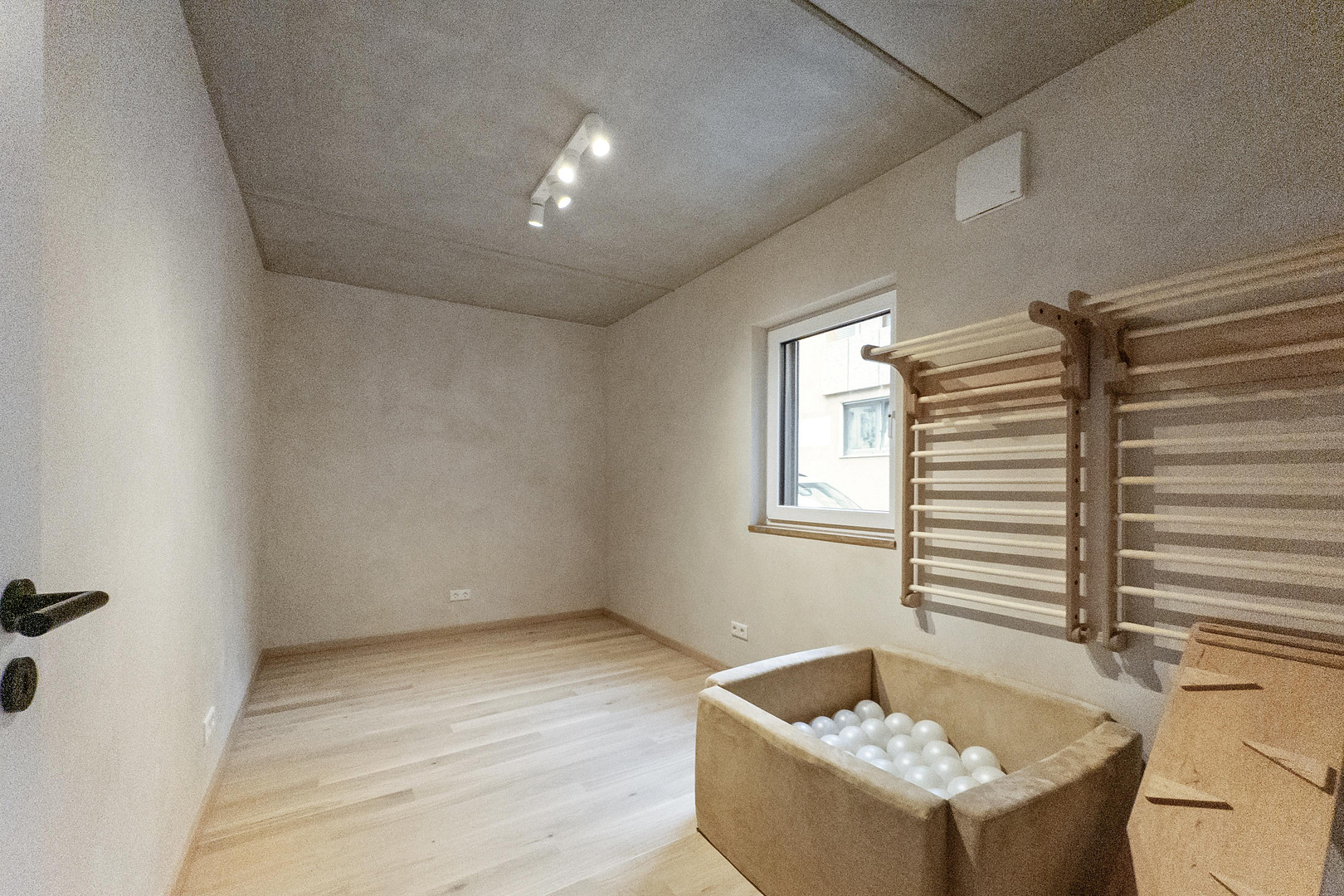 • Eichenparkett in den Wohnbereichen, im Dachgeschoss Massivholzfußboden