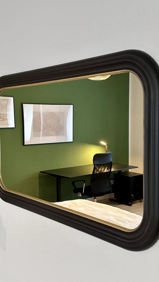 Das Zimmer ist voll möbliert und sofort bezugsbereit. Es ist das größte Zimmer der WG und bietet viel Platz zum Wohnen, Lernen und Entspannen.