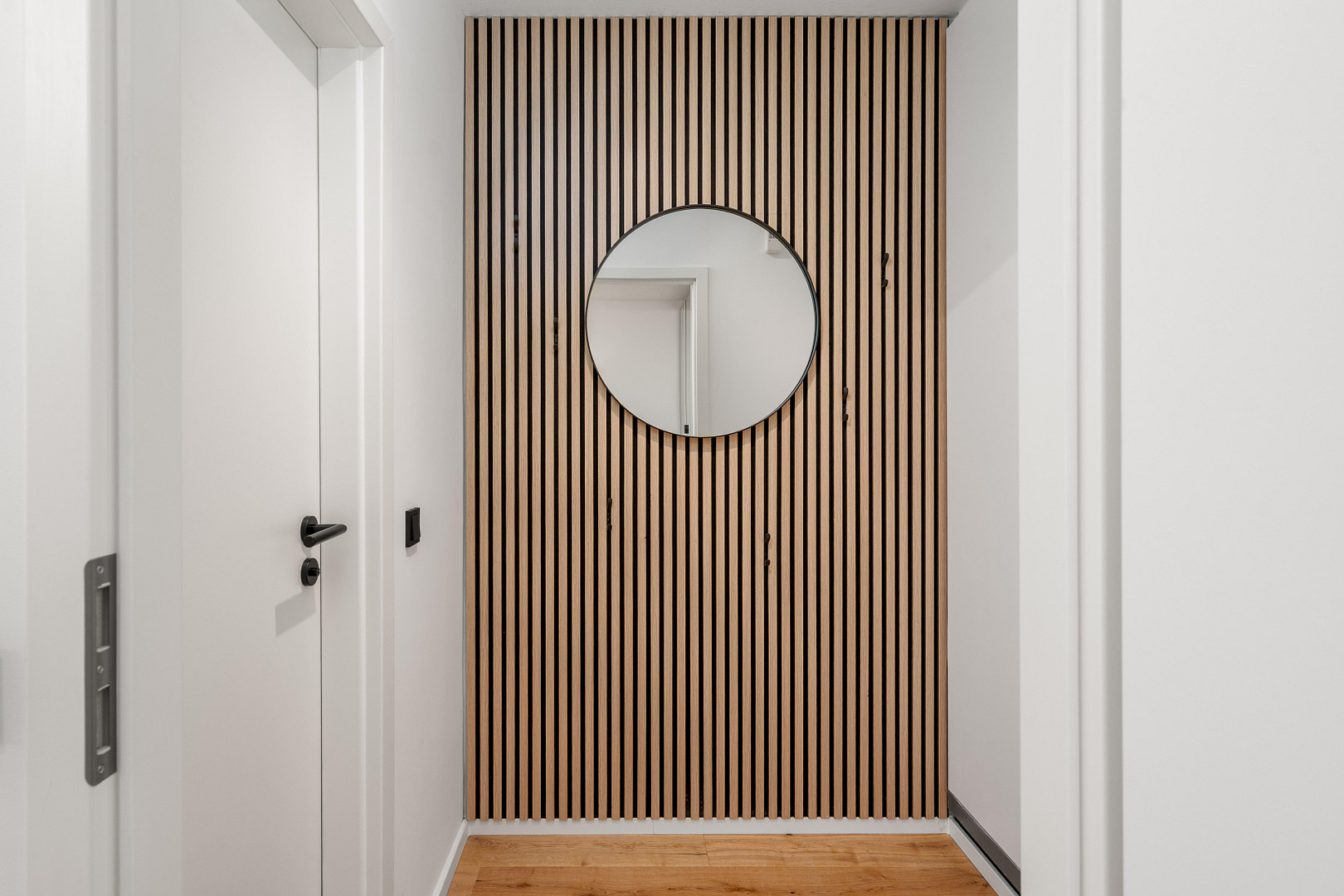 Im Zuge der Modernisierung wurde ein klares Designkonzept umgesetzt. Das Badezimmer überzeugt mit zeitlosen Terrazzo Fliesen sowie hochwertigen Armaturen. Im Wohnbereich sorgt großformatiges Eichenparkett für eine warme Atmosphäre. Die technische Infrastruktur wurde auf den neuesten Stand gebracht, die Wände glatt gespachtelt und neue Türen verbaut.