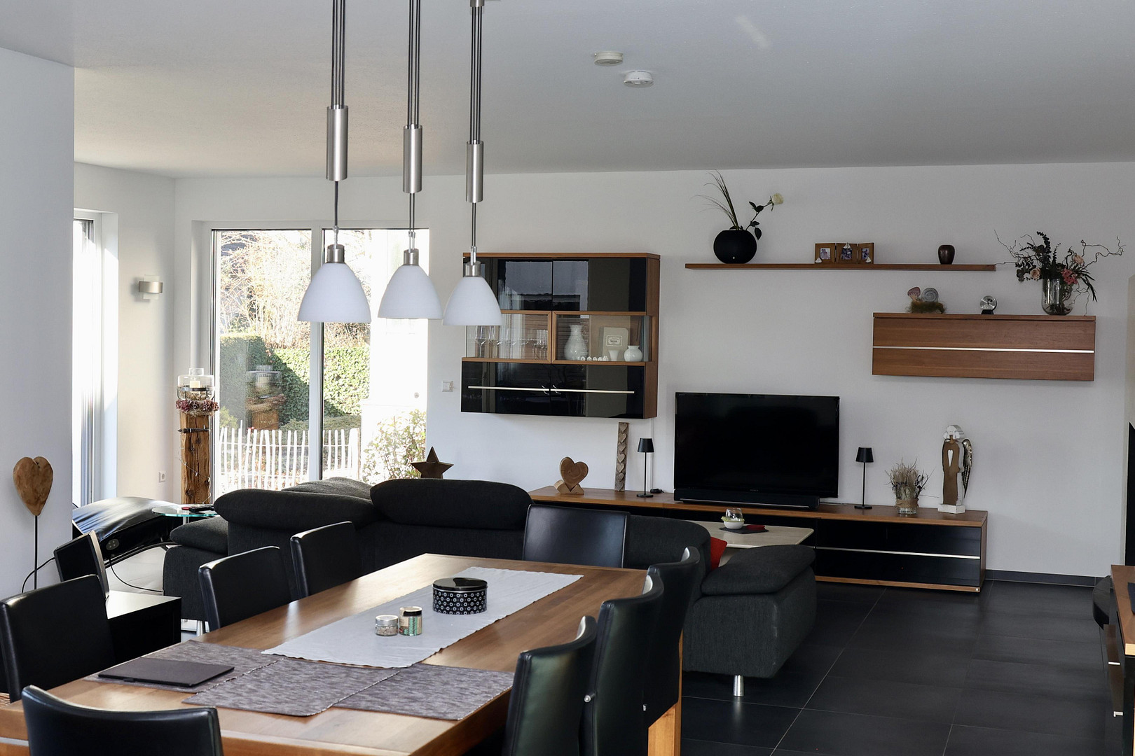 Ein besonderes Highlight ist der ebenerdige Zugang von Wohn- und Essbereich auf die großzügige Südterrasse und in den liebevoll angelegten Außenbereich. Der Garten ist komplett umzäunt und enthält einen überdachten Holzlagerplatz.