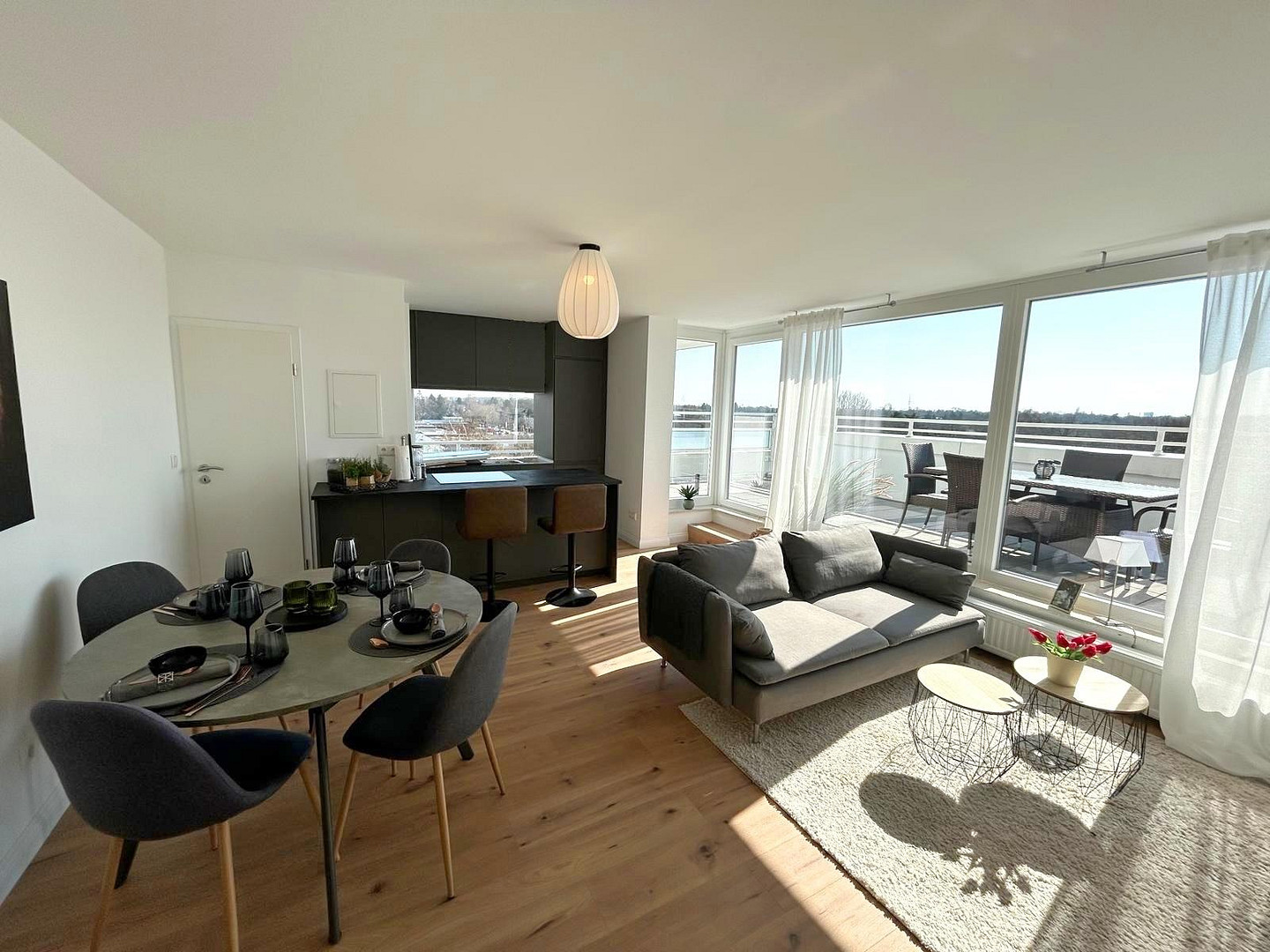 Die erst kürzlich abgeschlossene Modernisierung umfasst die Neugestaltung der gesamten Wohnung, einschließlich des Bades und der Küche u.A. mit feinverputzten und geschliffenen Wänden, Fliesen im Großformat 60x60cm und LED-Deckenspots in Flur und Bad. Die neue und offene Küche ist ausgestattet mit modernen grifflosen Fronten, Geschirrspüler, Induktionskochfeld, Kühl/Gefrier-Kombi uvm.