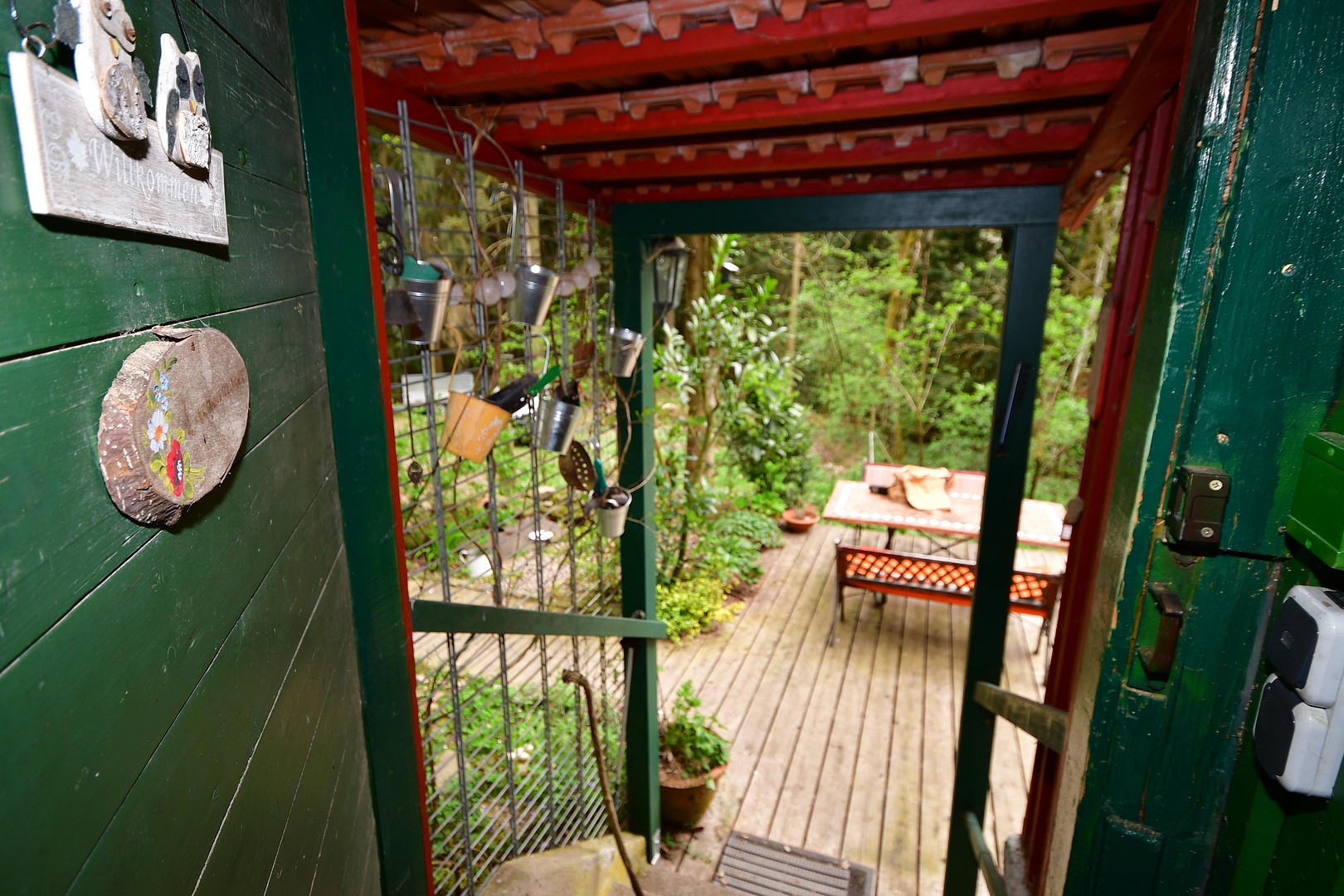 Platz für Gäste und Vorräte Das Anwesen bietet dank eines erst 2025 komplett renovierten Nebengebäudes zusätzliche Flexibilität. Auf ca. 25 m² findet sich hier ein weiterer Raum mit einem Bett, ideal für Gäste oder als ruhiges Arbeitszimmer im Grünen. Abgerundet wird die Ausstattung durch einen überdachten Geräteschuppen mit Holzlager, der praktischerweise mit einem weiteren Kühlschrank und einer Gefriertruhe bestückt ist. Eine befestigte Terrasse lädt dazu ein, den Blick über das 2.890 m² große Grundstück und den eigenen Waldbestand zu genießen.