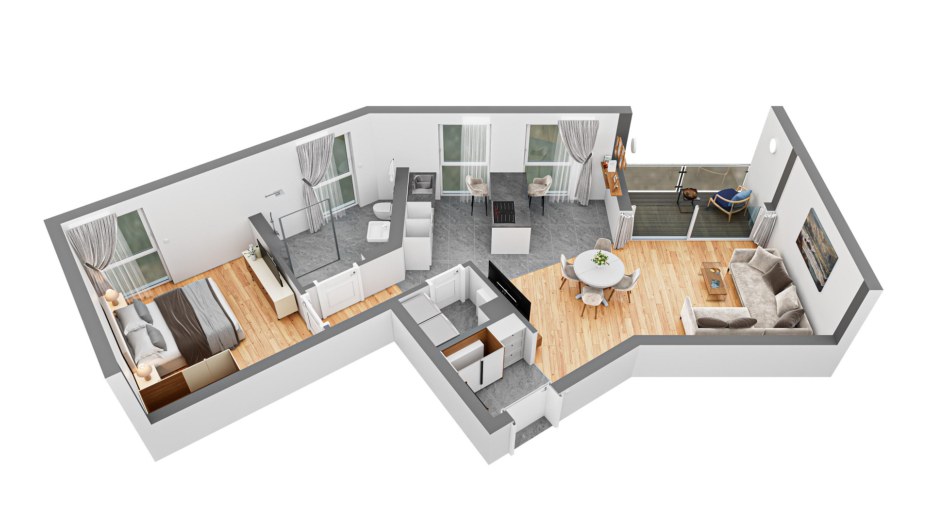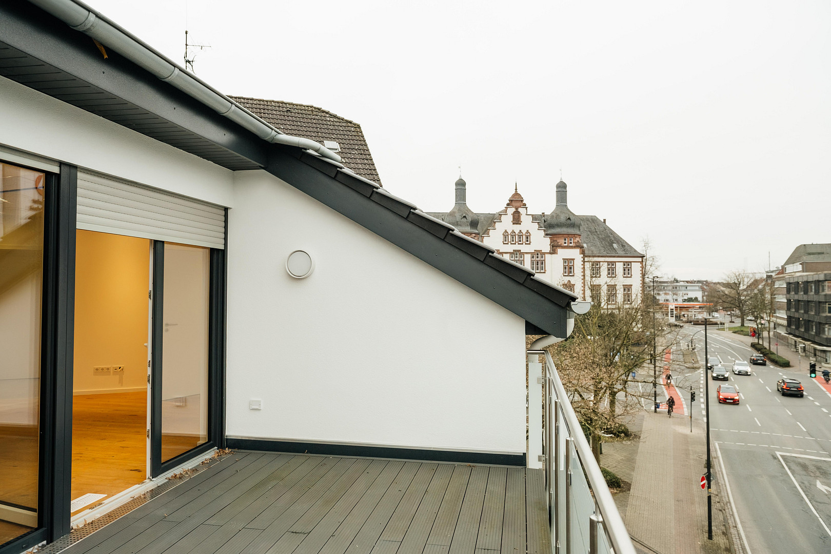 - Großzügige Balkone mit LED-Beleuchtung, langlebigem WPC-Dielenbelag und Edelstahlgeländern