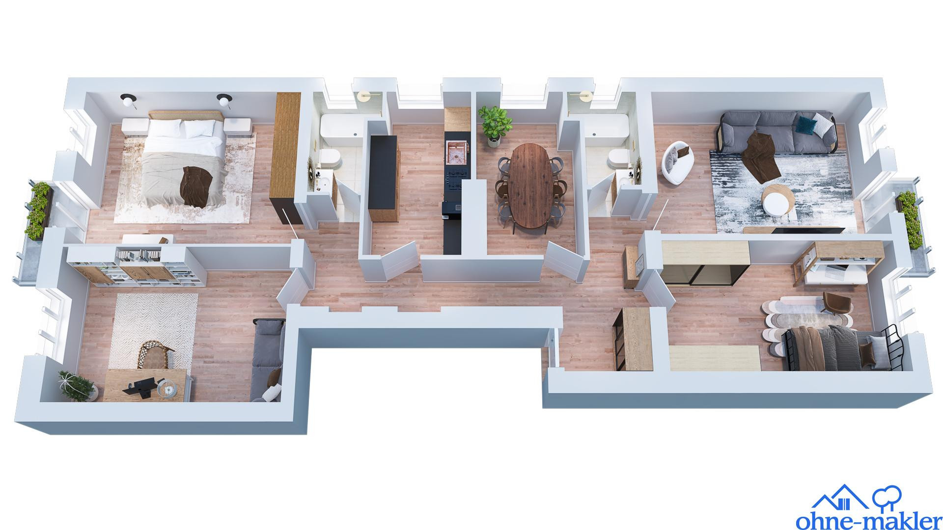 ✅ Die Küche und das kleinste Zimmer lassen sich auf Wunsch zu einer Wohnküche verbinden