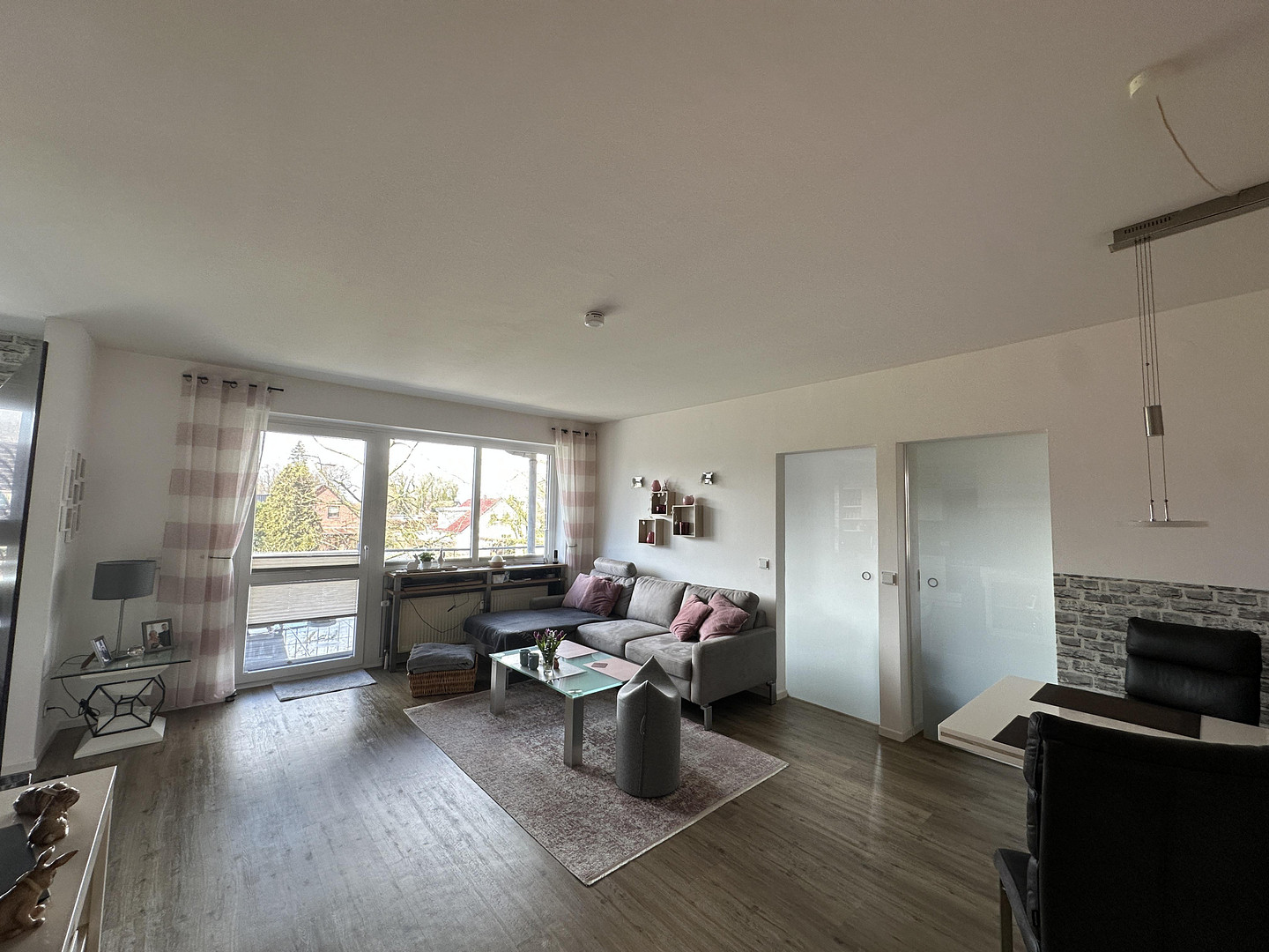 - Hochwertige Milchglas-Schiebetüren in den Wohnräumen sowie