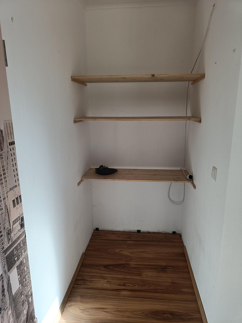 Das Wohnzimmer, der Flur und das Schlafzimmer haben einen einheitlichen Laminatboden und der Wohnküchenbereich und das Bad sind gefliest. Der Balkon der Wohnung ist mit WPC Brettern ausgelegt. Einige Wände und Decken der Wohnung sind normal renovierungsbedürftig. Ansonsten ist die Wohnung ohne diese kleineren Renovierungsarbeiten sofort einzugsbereit.