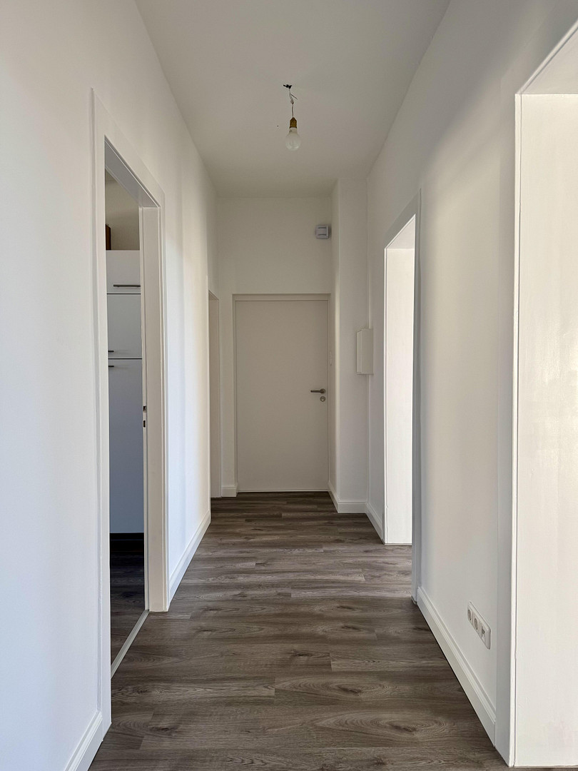 Die Wohnung mit ca. 87 qm verfügt über drei geräumige Zimmer und zeichnet sich durch einen sehr gelungenen Grundriss aus. Die Zimmer mit überhohen Decken und großen Fenstern gehen allesamt vom zentralen Flur ab. Die Zimmer sind im Zuge der kürzlich abgeschlossenen Renovierung mit hochwertigen Vinylböden in ansprechender Holzoptik ausgestattet und frisch weiß gestrichen.