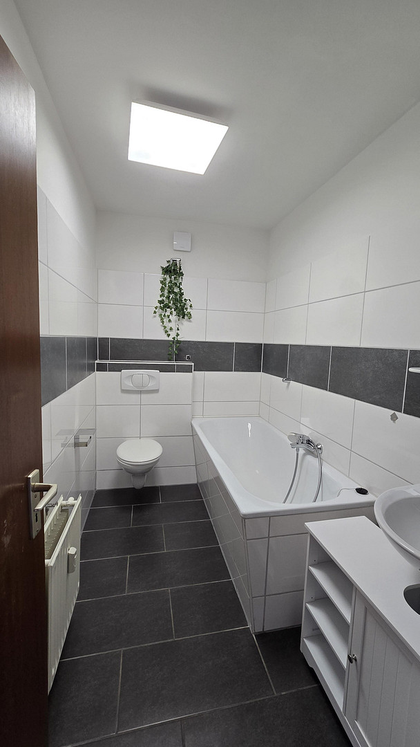 •Bodenbeläge: hochwertiges Laminat in Holzoptik und Fliesen.
