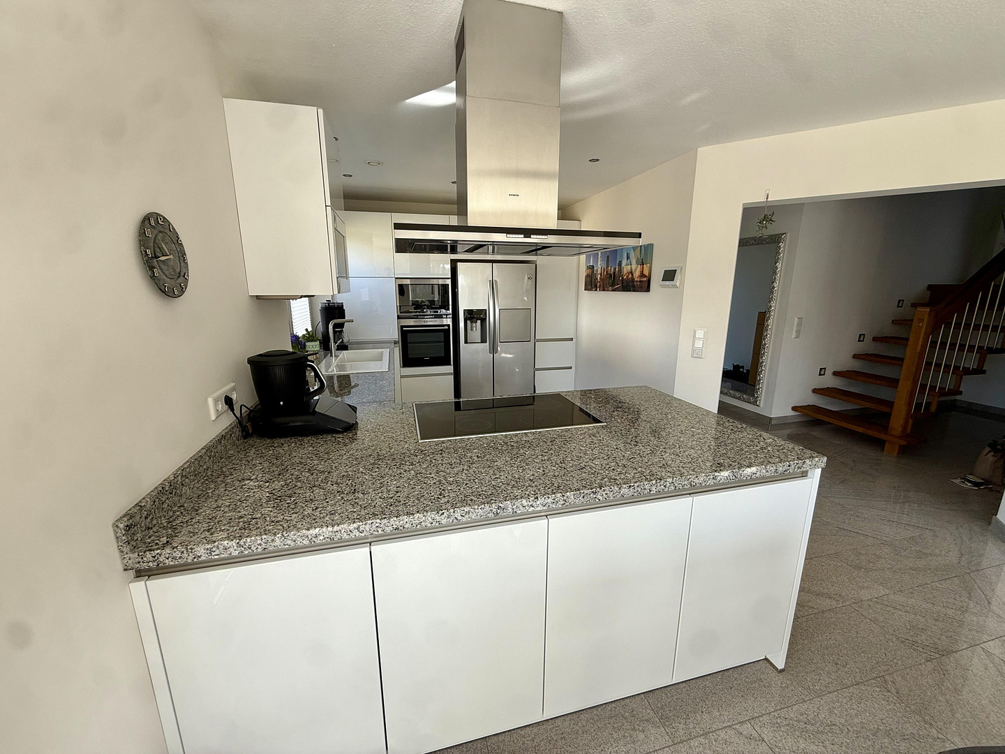 - große Küche mit Kochinsel und 4 cm starker Natursteinplatte