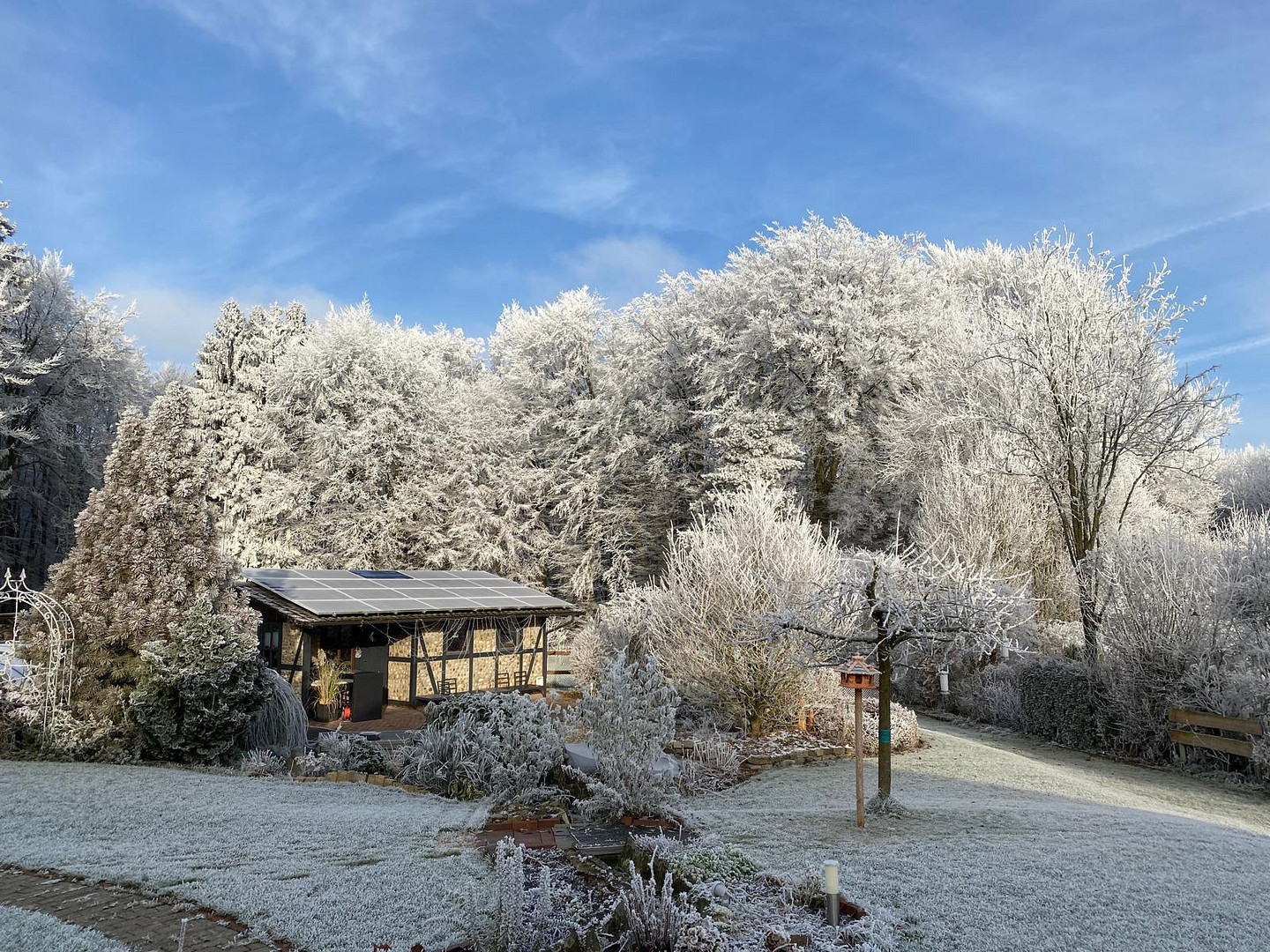 Dank Beheizung ist er ganzjährig nutzbar und erweitert den Wohnbereich um einen lichtdurchfluteten, naturnahen Rückzugsort.