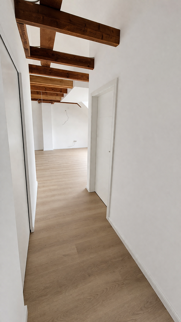 Ernst-Cammann Straße 1, 30453 Hannover (Ahlem) – NiedersachsenDiese neu ausgebaute Dachgeschosswohnung befindet sich im 3. bzw. 4. Obergeschoss eines gepflegten Mehrfamilienhauses in Hannover-Ahlem. Auf ca. 52 m² Wohnfläche bietet die Wohnung eine moderne und durchdachte Raumaufteilung mit separatem Schlafzimmer, einem stilvollen Badezimmer sowie einem offenen Wohn- und Essbereich.
