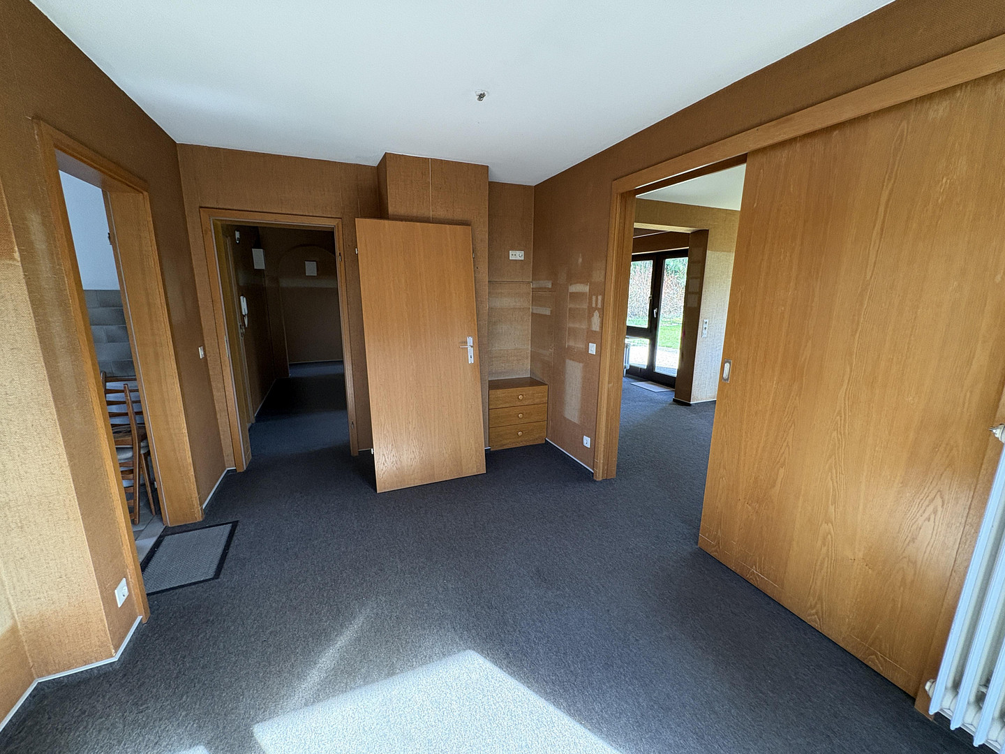 Im Erdgeschoss erwartet Sie ein großzügiger Grundriss mit vier gut geschnittenen Zimmern, die flexibel als Wohn-, Ess-, Arbeits- oder Gästezimmer genutzt werden können. Ein Badezimmer sowie eine separate Toilette sorgen für zusätzlichen Komfort im Alltag.