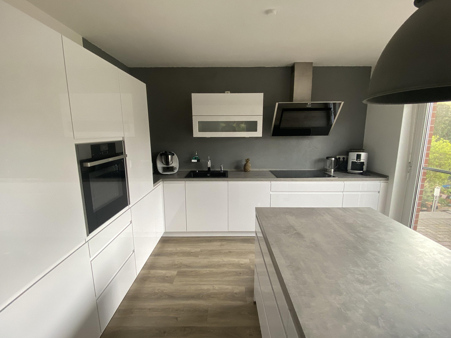 -moderne NOLTE-Einbauküche mit weißen Hochglanzfronten und hochwertigen Elektrogeräten (renoviert 2019)