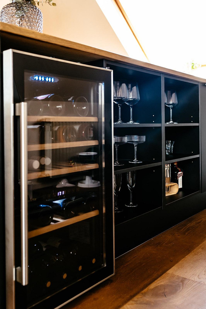 Die Küche fügt sich harmonisch in den Wohnbereich ein und überzeugt durch ihre moderne und funktionale Gestaltung. Neben dem Schlafzimmer steht ein weiteres Zimmer zur Verfügung, das flexibel als Kinder-, Gäste- oder Arbeitszimmer genutzt werden kann.
