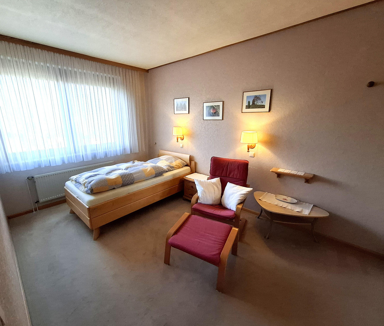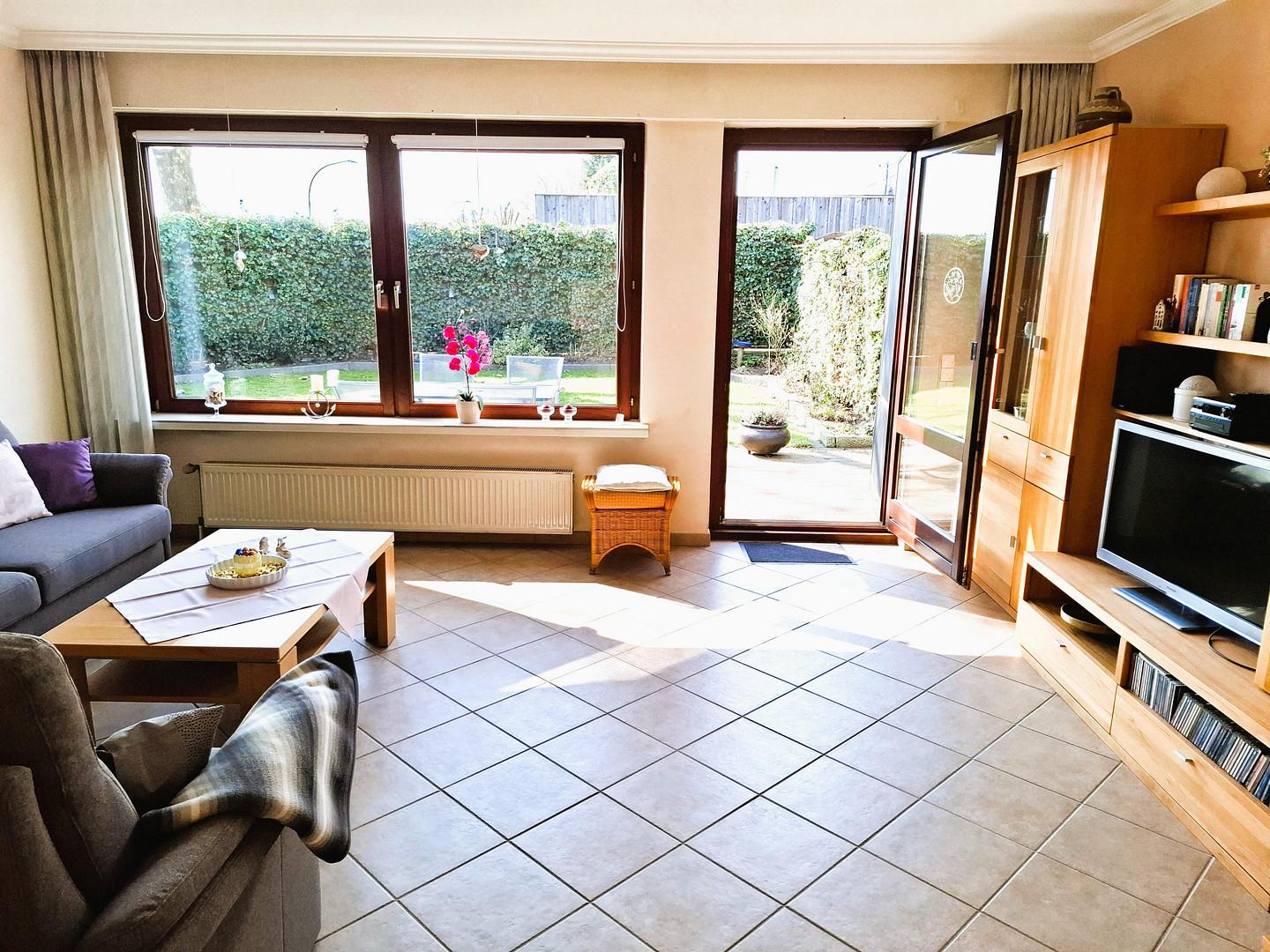 Das gesamte Erdgeschoss ist vor einigen Jahren mit ansprechendem Fliesenbelag ausgestattet worden, der in einem sehr guten, fast neuwertigen Zustand ist. Im Obergeschoss befindet sich Teppichbodenbelag (im Bad Fliesen). Der Keller ist teilweise mit Fliesen und teilweise mit Teppich ausgestattet.