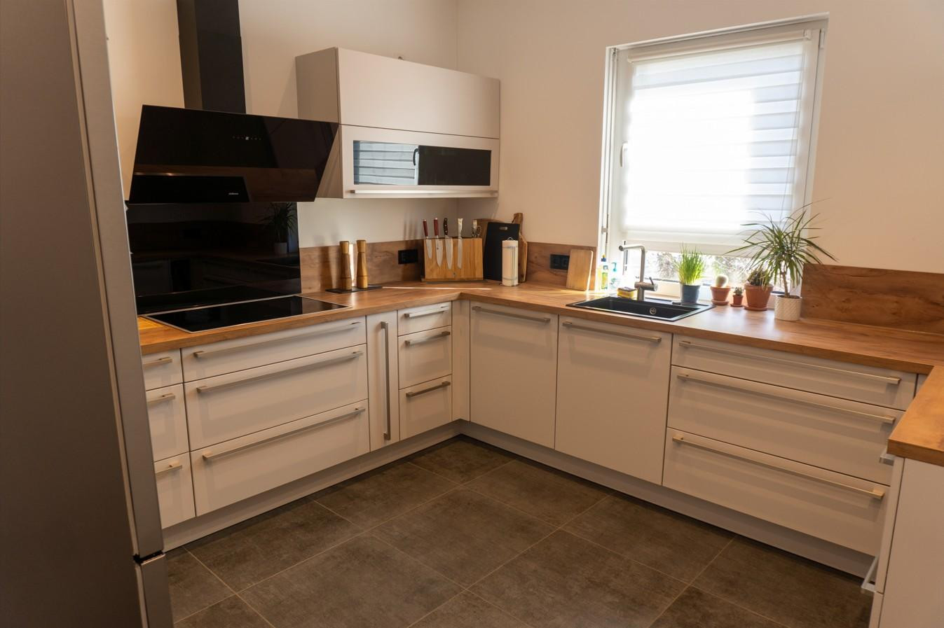 Küche: Gehobene Einbauküche inklusive hochwertiger Markengeräte (Herd, Mikrowelle) – sofort einsatzbereit.
