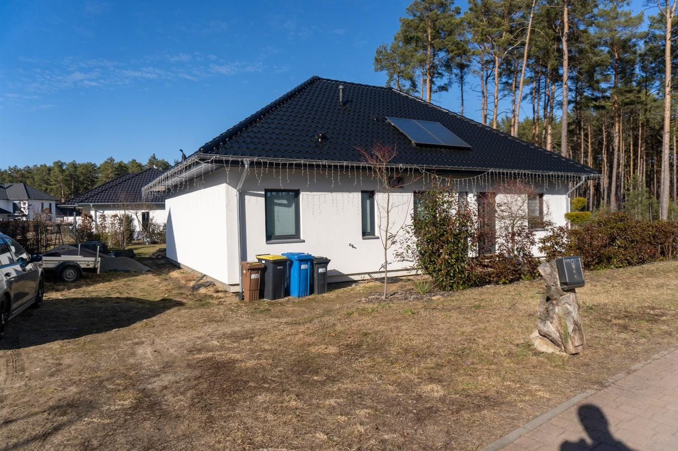 Willkommen in Borkwalde! Wer die Ruhe sucht, ohne auf eine perfekte Anbindung verzichten zu wollen, wird dieses Haus lieben. Wir verkaufen unseren modernen Bungalow in Holzständerbauweise, der konsequent auf Komfort und Barrierefreiheit ausgelegt ist. Nachhaltigkeit inklusive: Das Haus wurde in hocheffizienter KfW-55-Bauweise errichtet, was Ihnen dank exzellenter Dämmung und modernster Technik dauerhaft niedrige Energiekosten garantiert.