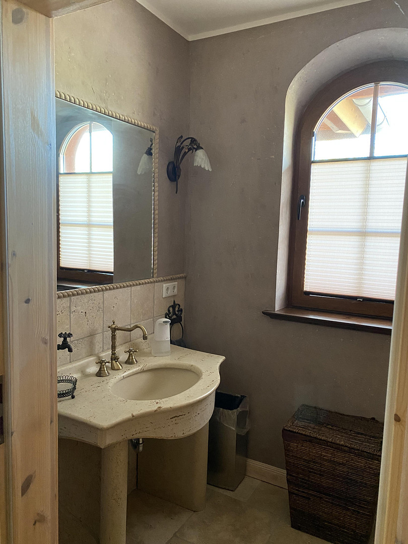 Ein Duschbad mit WC und Bidet befindet sich auf dieser Etage, wobei für ein zweites Bad die Vorstreckung der Rohre bereits in der Wand liegen.