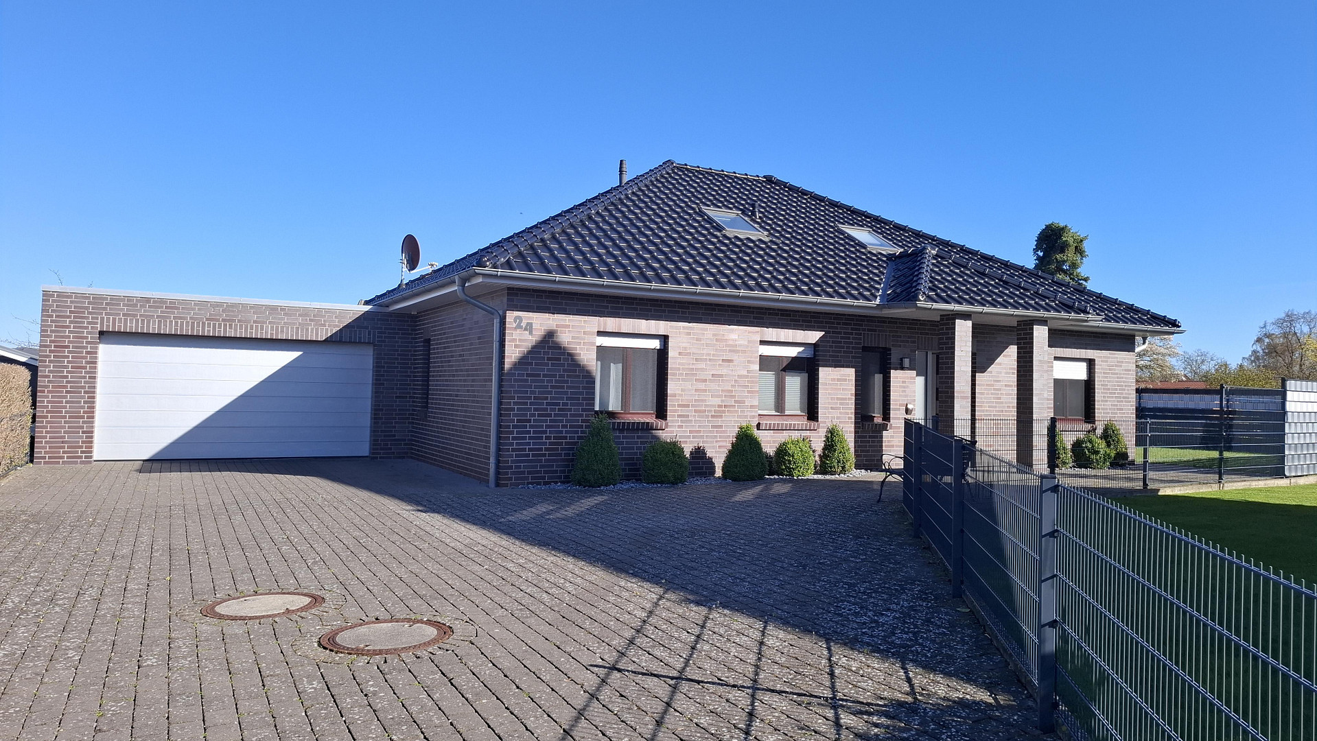 30890 Barsinghausen (Göxe) – NiedersachsenDieser Bungalow überzeugt durch seine moderne und zeitlose Architektur. Die angebaute DoppelGarage fügt sich optimal in das Erscheinungsbild des Hauses ein.